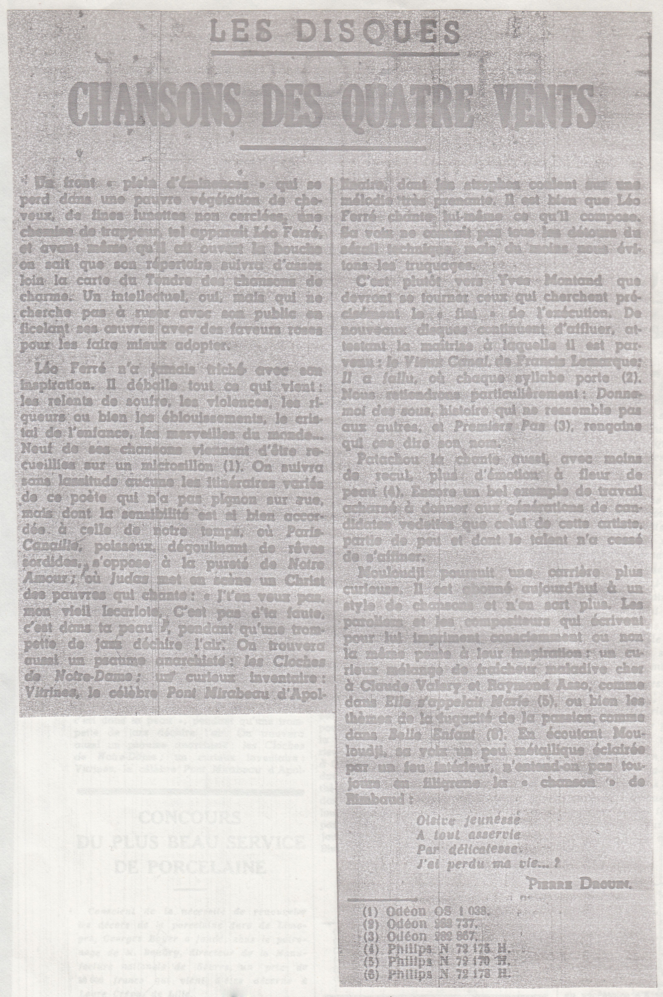 Source : voir livre Layani, Les chemins de Léo Ferré