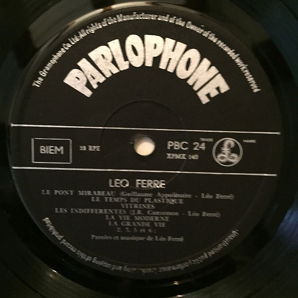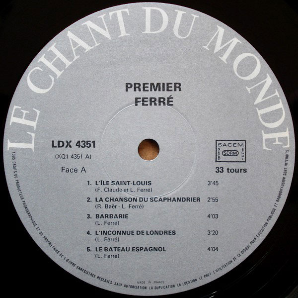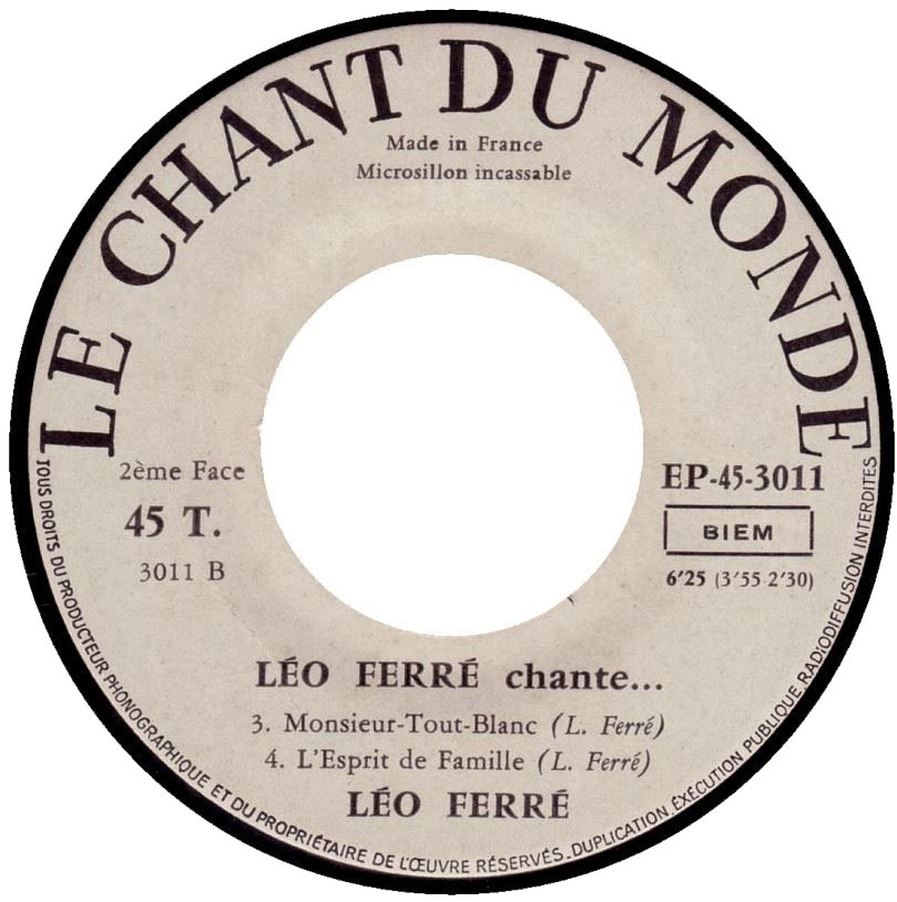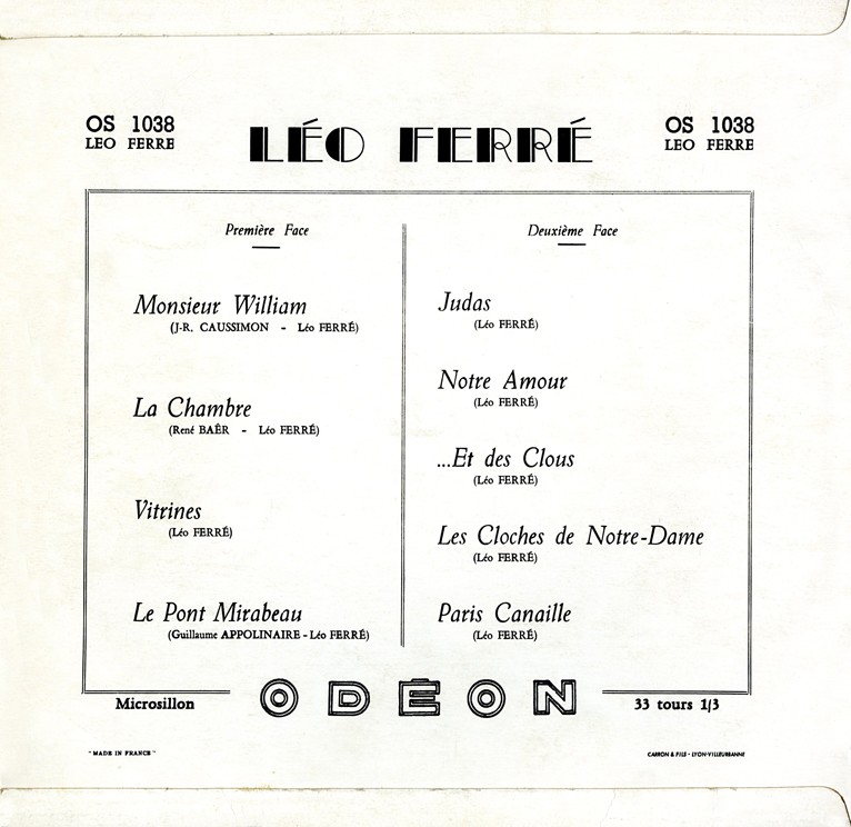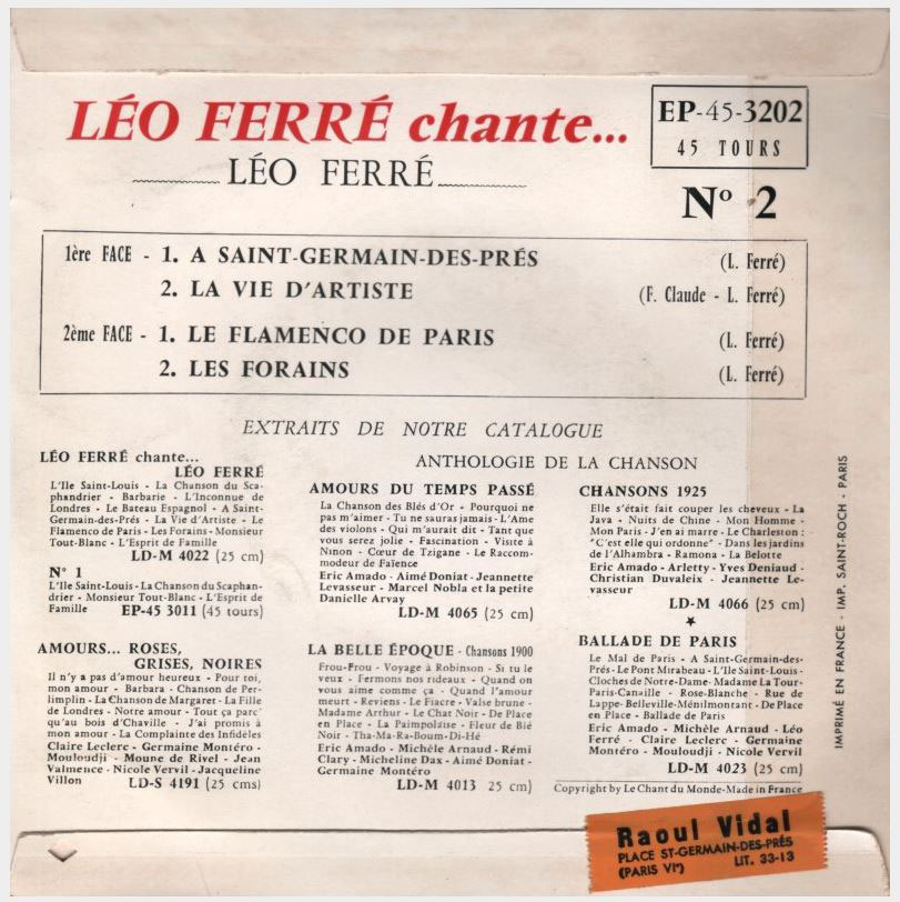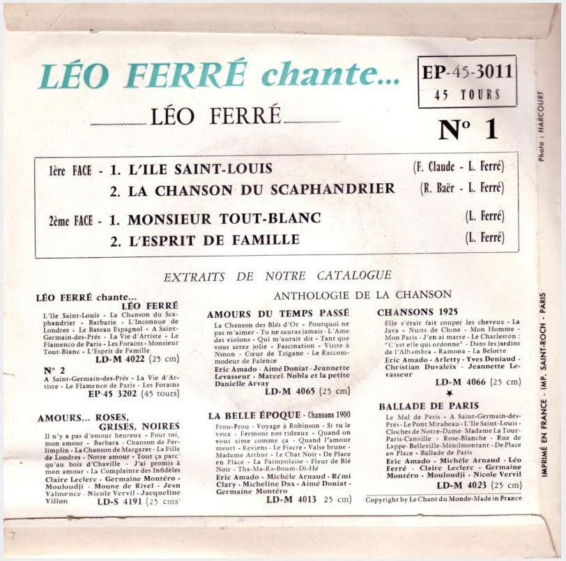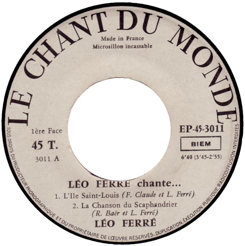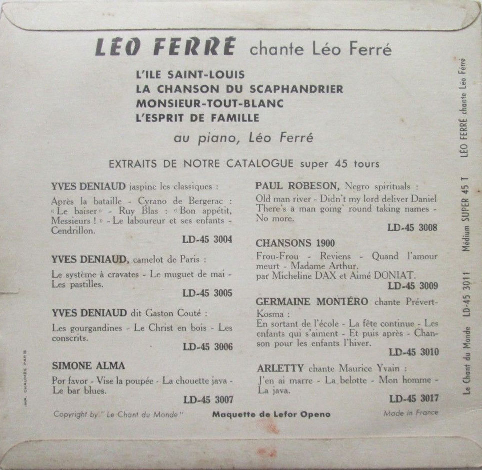 Chansons de Léo Ferré interprétées par Léo Ferré - Le chant du Monde LD-M-4022