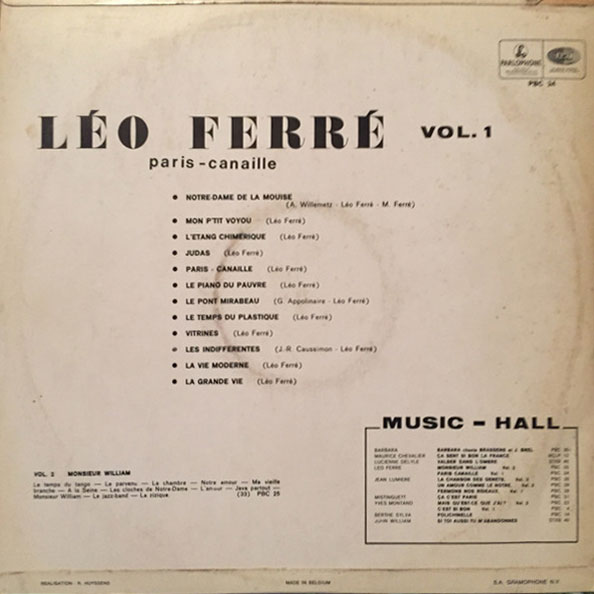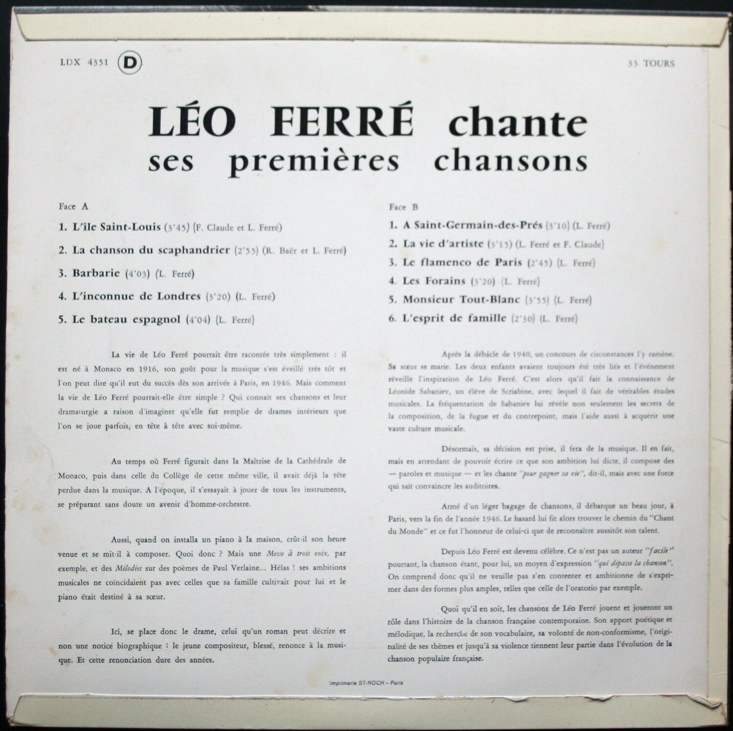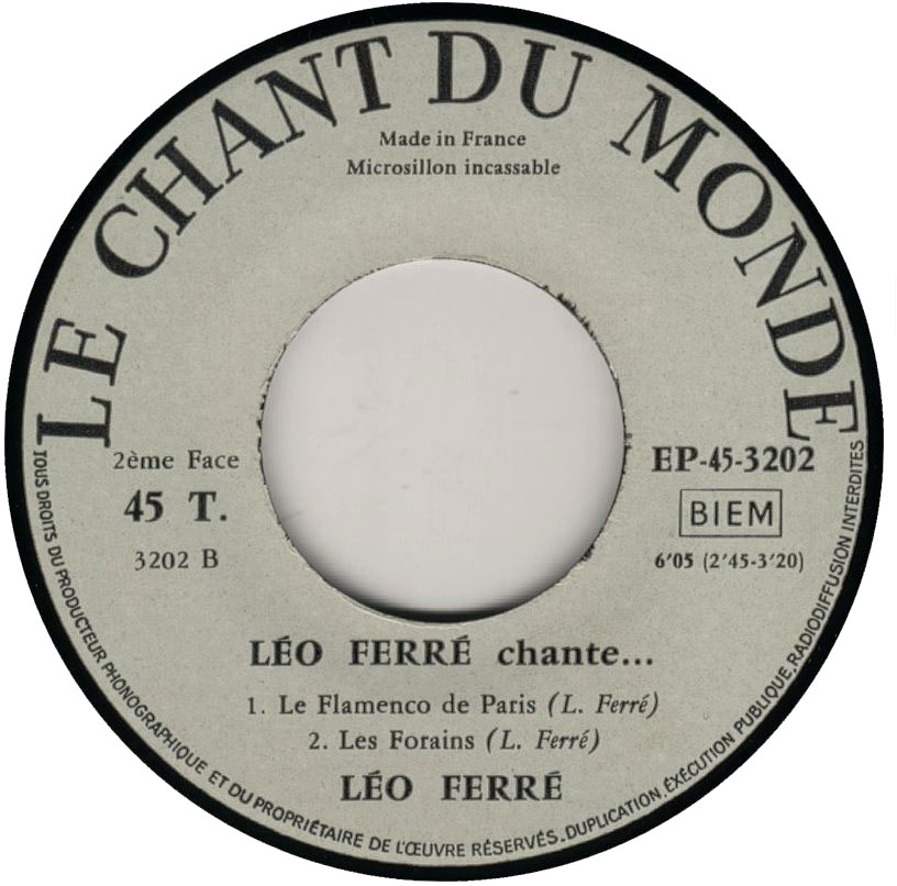 En 1950, Léo Ferré signe un contrat phonographique de deux ans l'engageant à enregistrer douze titres par an pour le compte du label Le Chant du Monde. Chose faite la première année et puis... plus rien, sans que personne ne s'en émeuve. Manque de moyens ? Désinvolture ? Inertie ?...