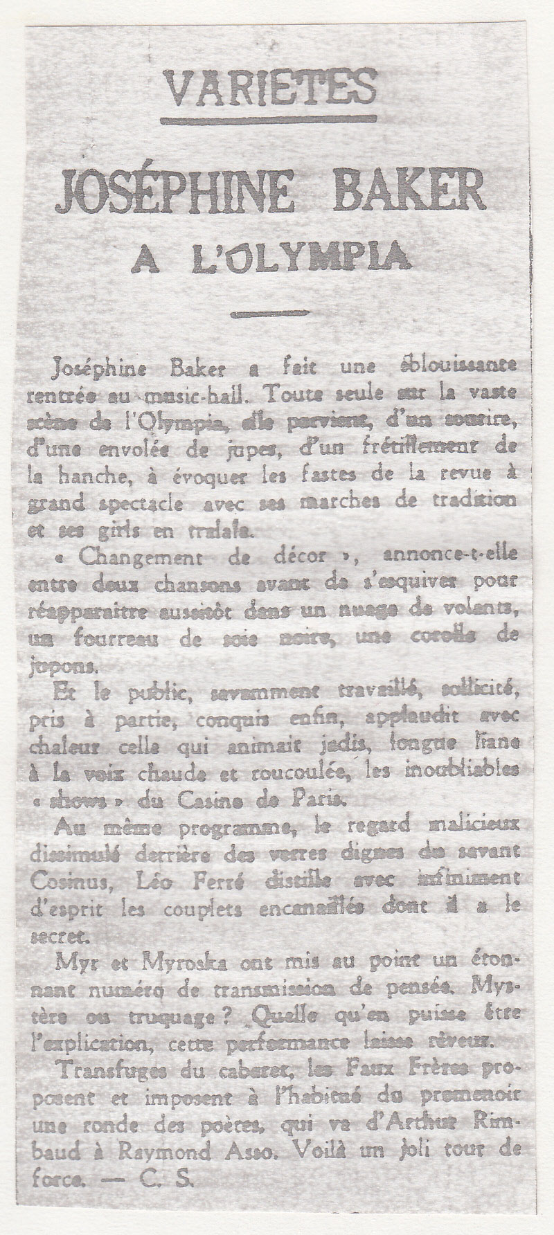 • "Joséphine Baker à l'Olympia"