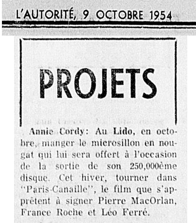 • Annie Cordy ../.. tourner dans "Paris-Canaille"