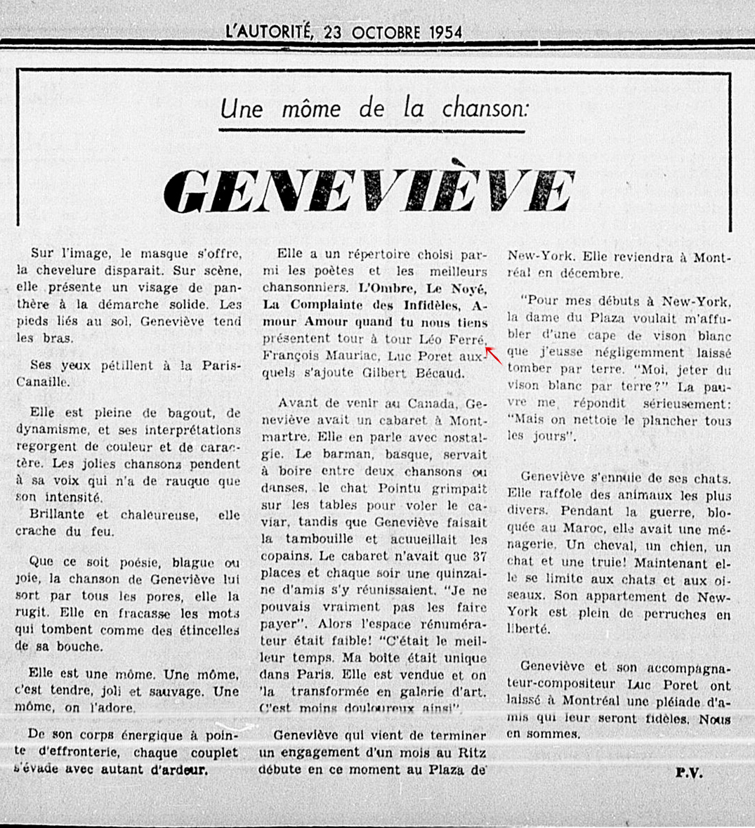 • Une môme de la chanson : Geneviève