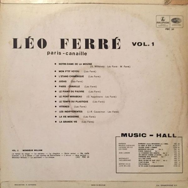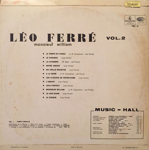 Album bicéphale donc, dialectique même, prémonitoire en un sens ; qui creuse de la façon la plus inspirée le sillon à succès de Paris Canaille (la chanson) et son cortège de vanités, avant de s'éployer dans un classicisme orchestral que l'on retrouvera quasiment inchangé, vingt ans plus tard, après bien des deuils et des détours, lorsque Léo enregistrera à sa guise avec l'orchestre symphonique de la RAI-Milan en Italie.