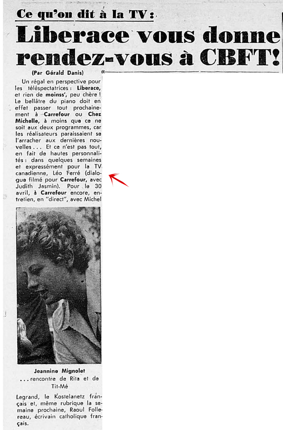 La semaine à Radio-Canada, 1950-1976, samedi 10 mai 1958