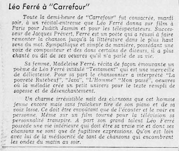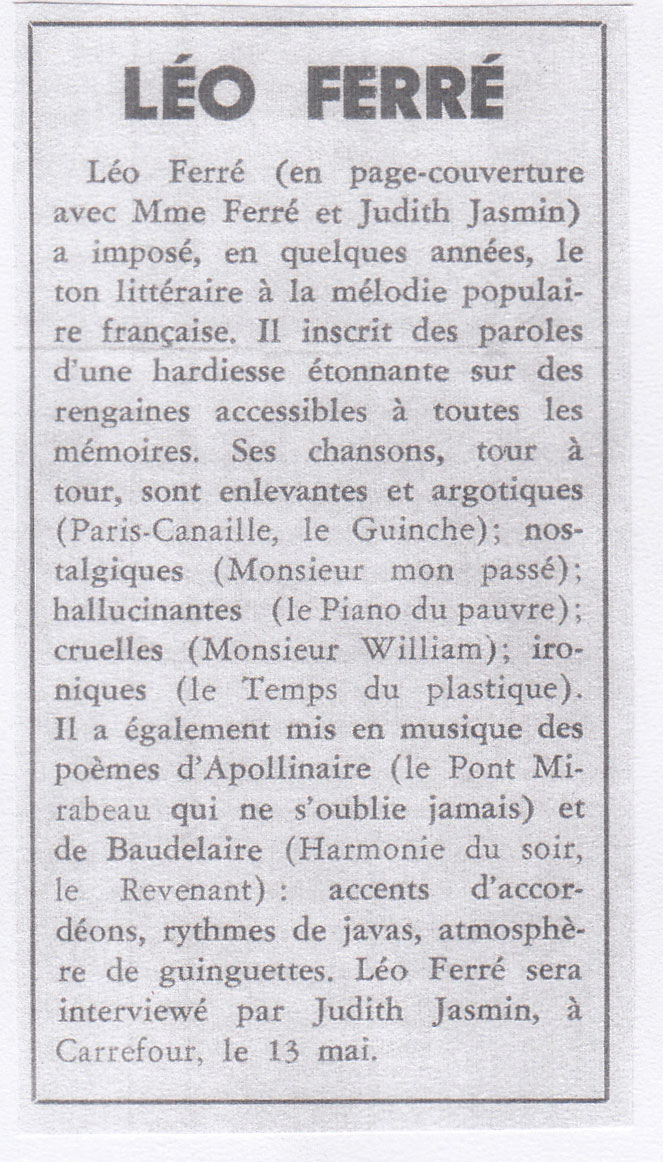 • Léo Ferré, Roger Nicolas et de nombreuses vedettes