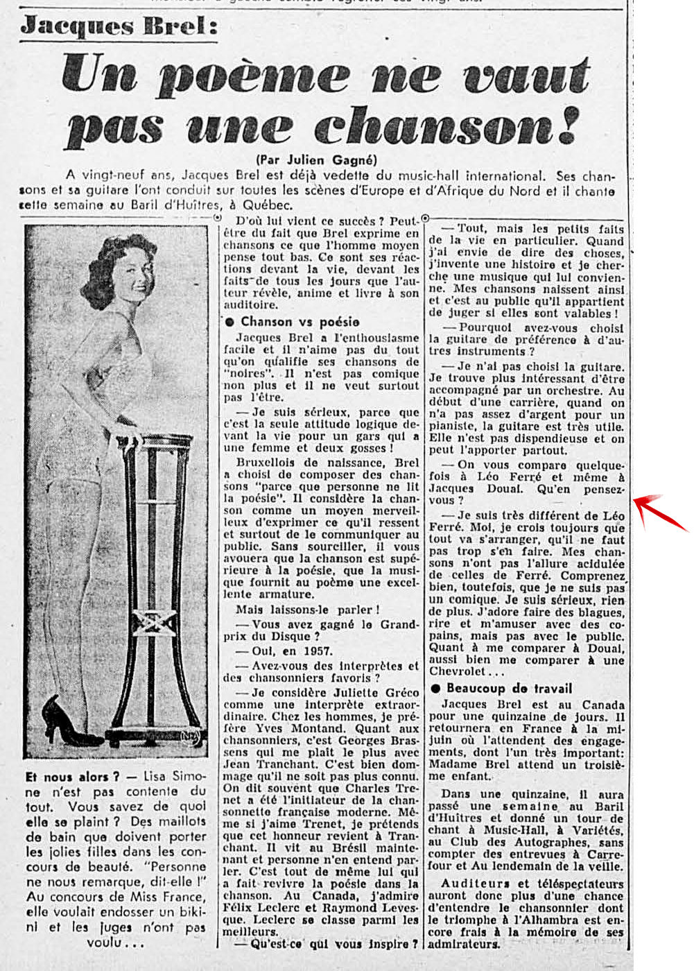 • Jacques Brel : Un poème ne vaut pas une chanson !