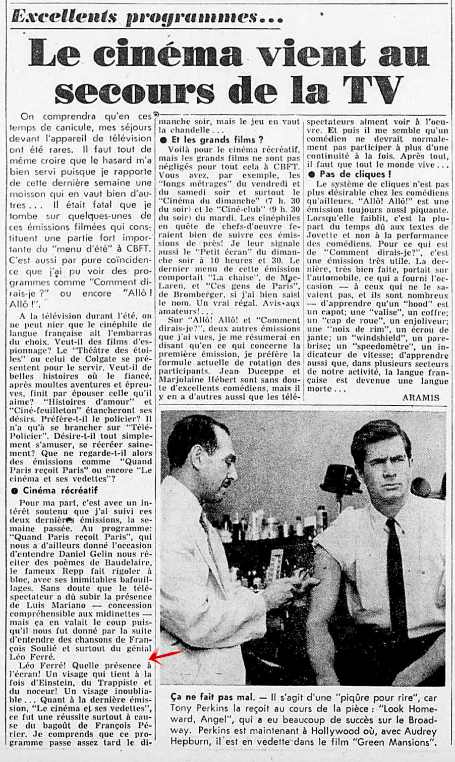 Radiomonde et télémonde, 1952-1970, samedi 26 juillet 1958