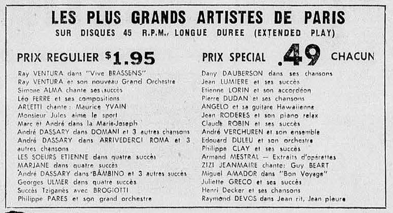 • Les plus grands artistes de Paris sur disques 45 R.P.M. - Publicité