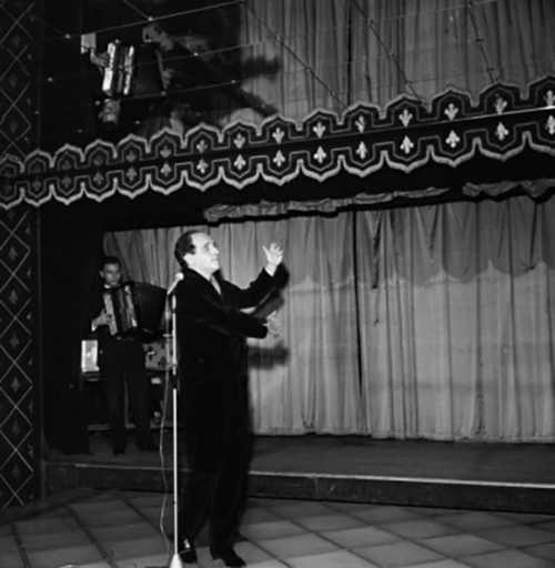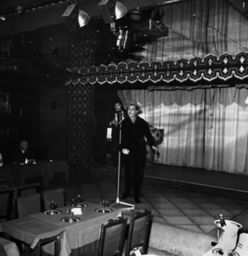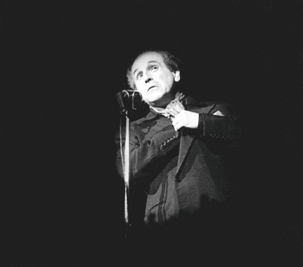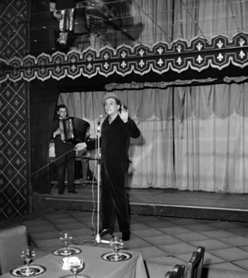 Léo Ferré au récital à la Mutualité pour le PCF, le 21 avril 1959.
