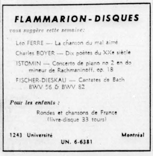 Publicité Flammarion Disques