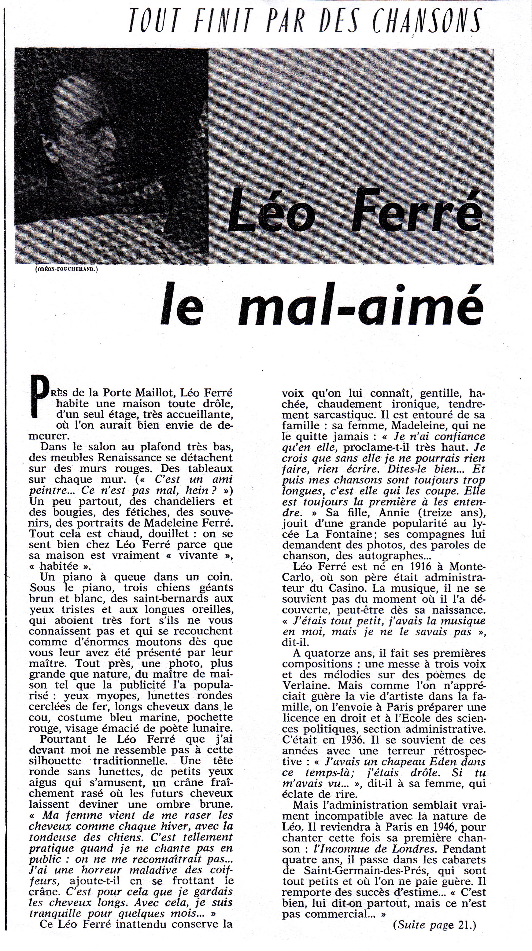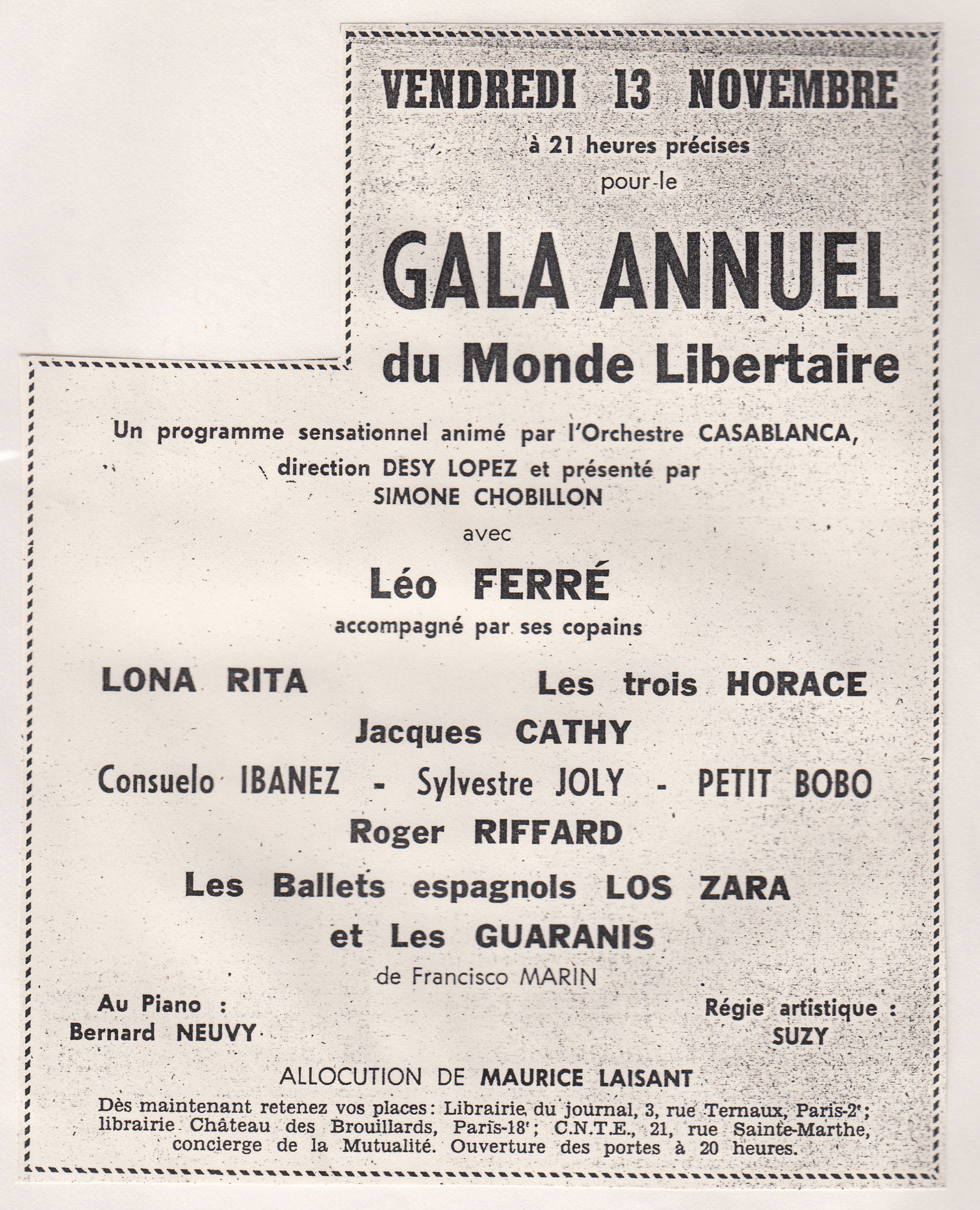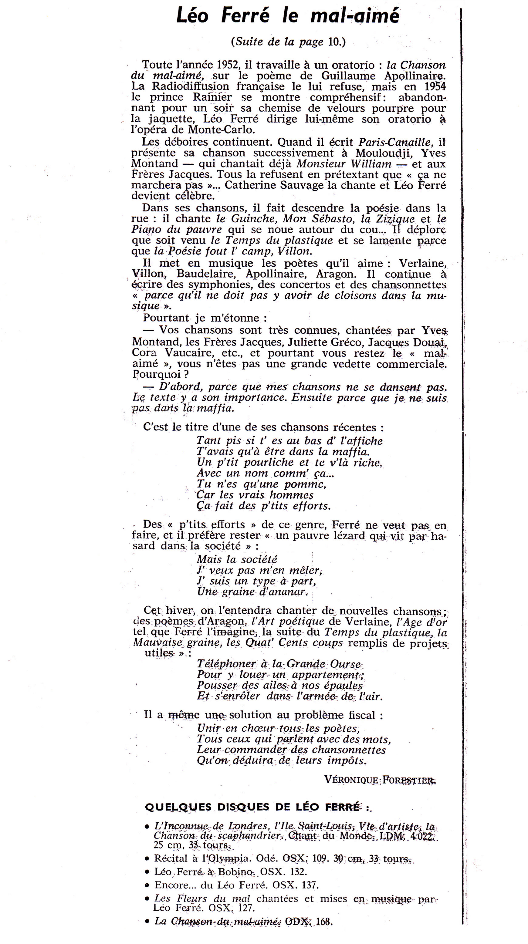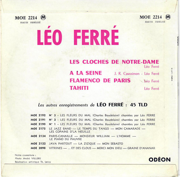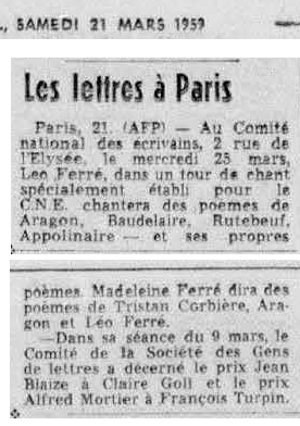 Source : Robert Belleret, Léo Ferré. Une vie d'artiste : biographie, Actes Sud, 1996, p.460