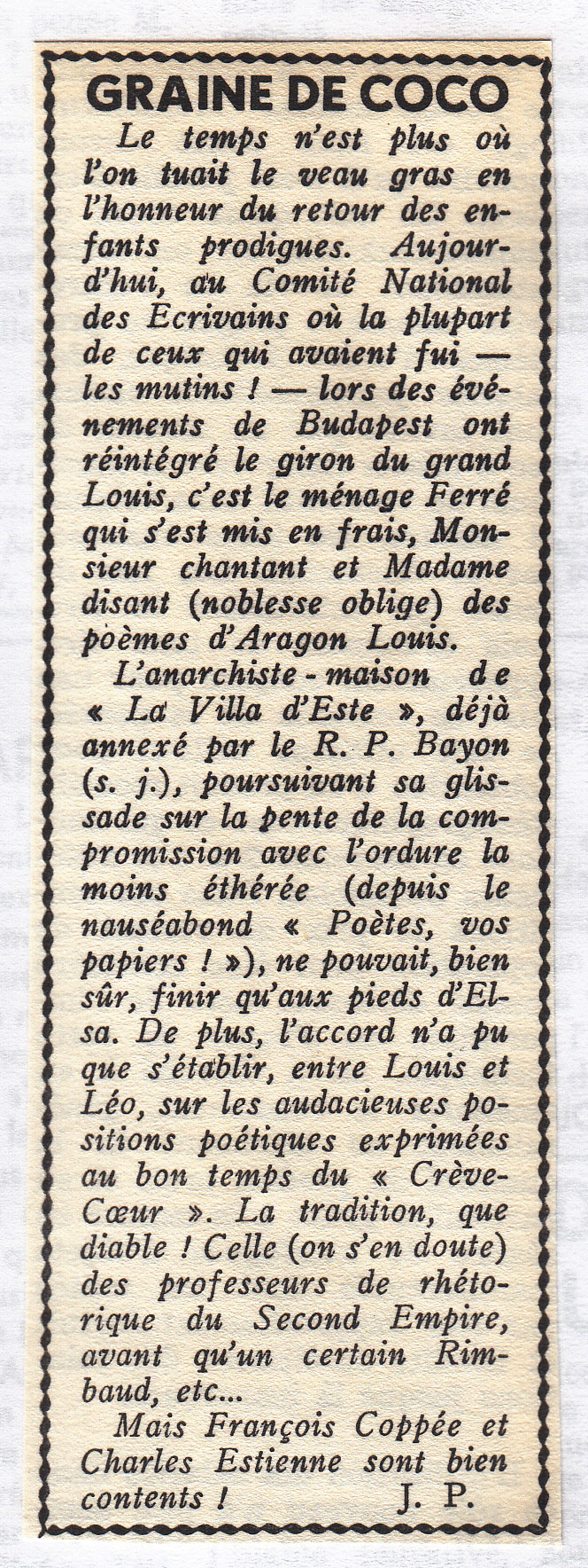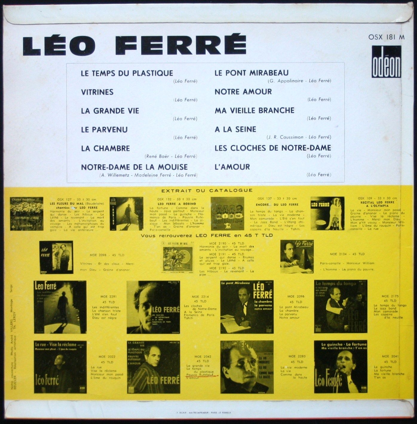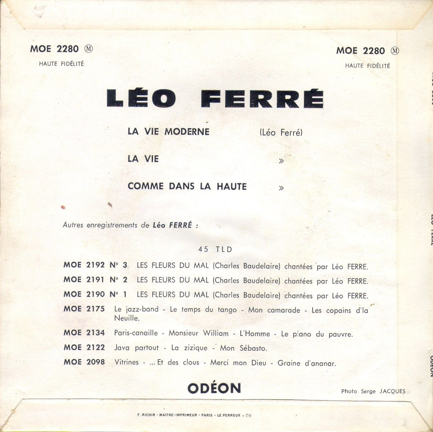 Source : Robert Belleret, Léo Ferré. Une vie d'artiste : biographie, Actes Sud, 1996, p.460