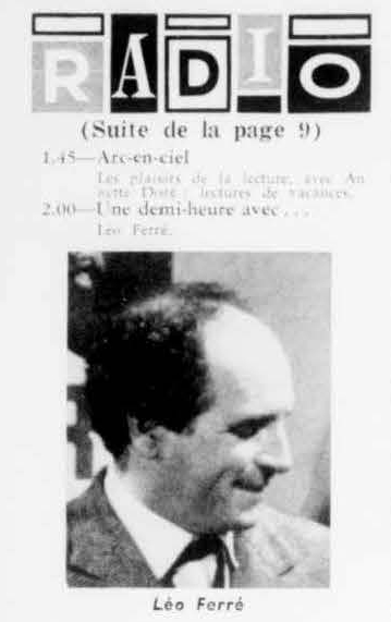 Au cours de ses émissions, Luc Bérimont captera et conservera un certain nombre des créations de Léo Ferré.
