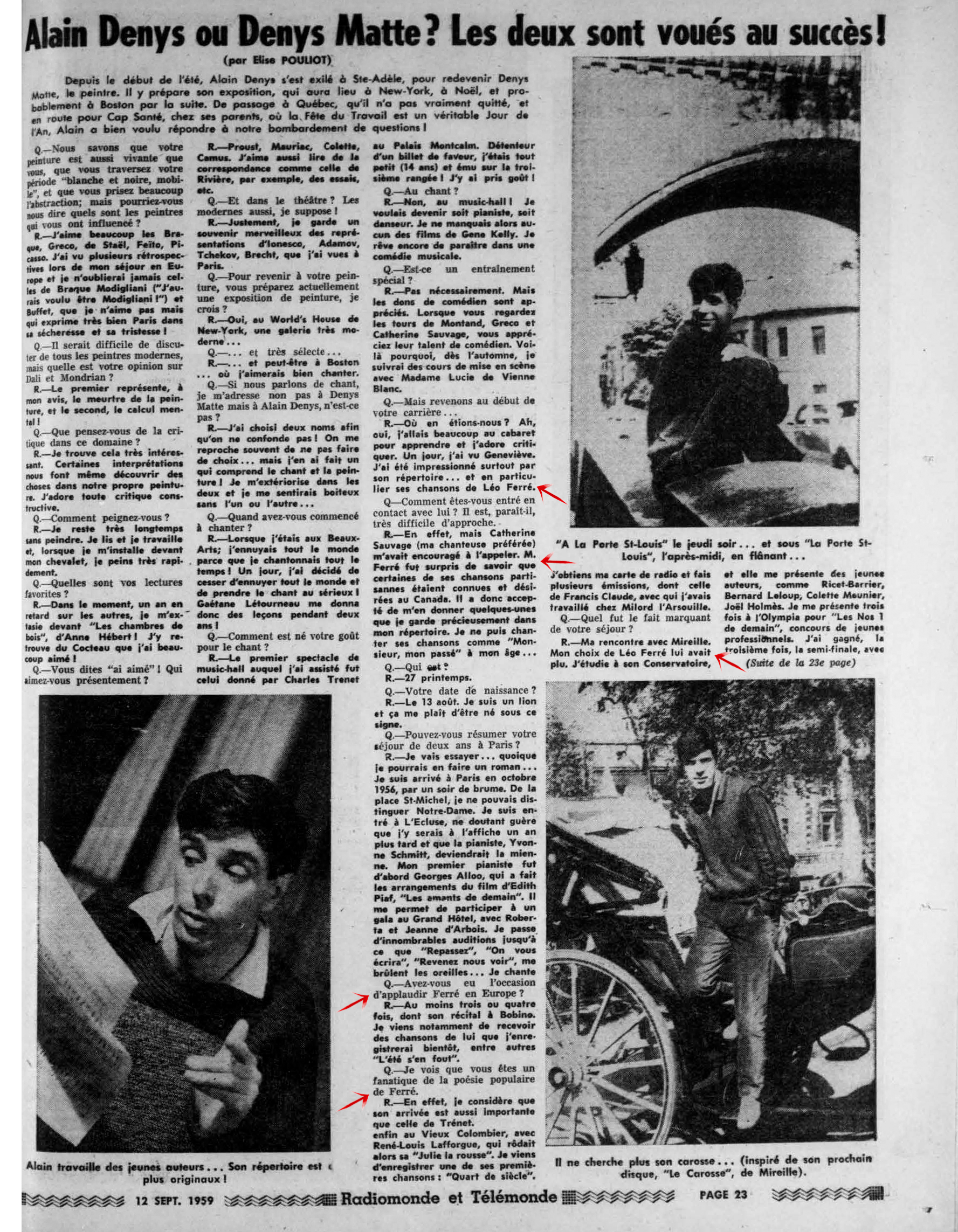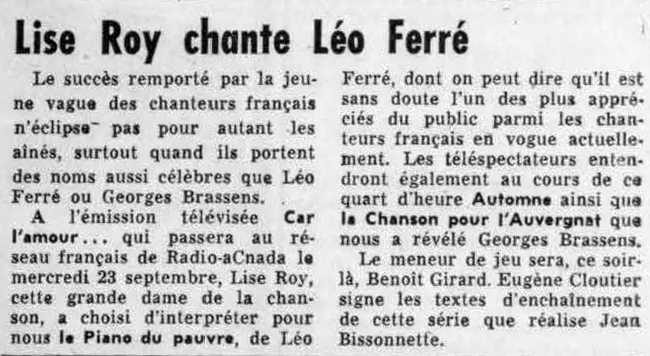 Au cours de l’émission de Luc Bérimont, Léo parle des 15 poèmes d’Aragon qu’il a mis en musique durant l’automne 1958.