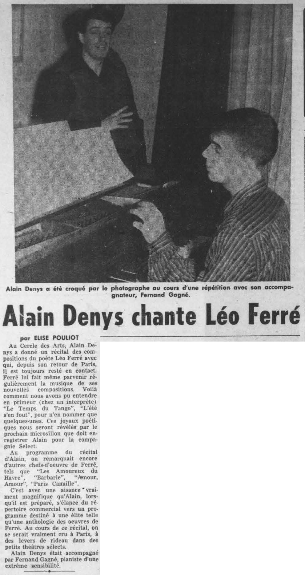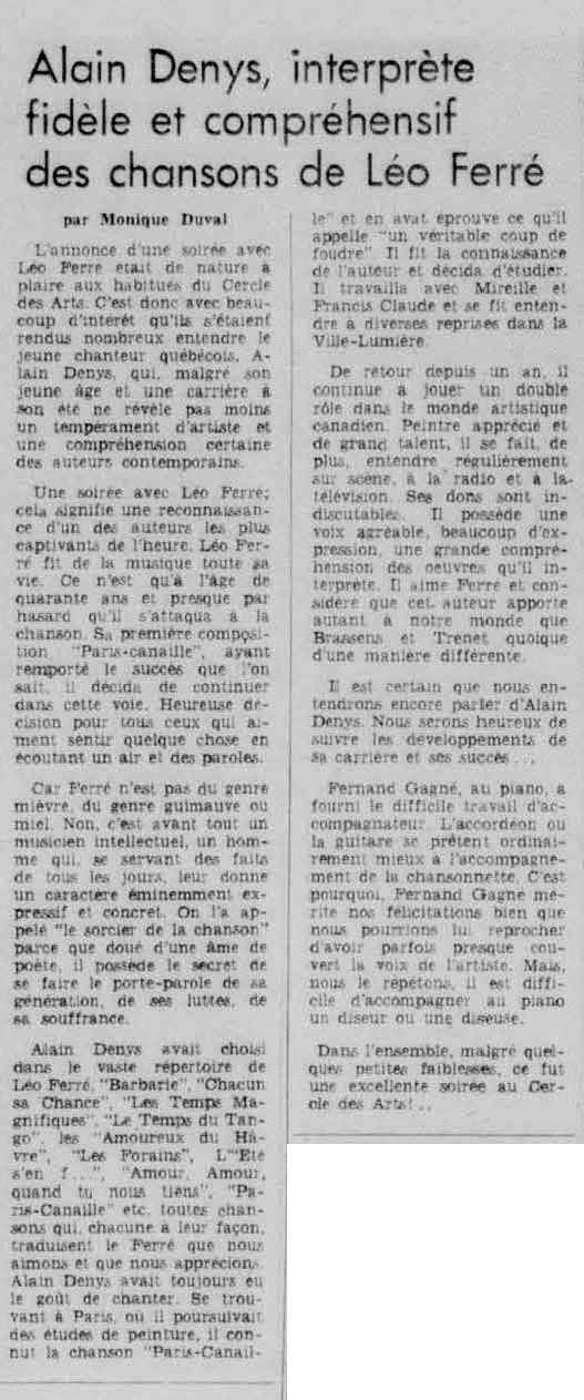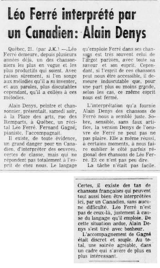 • Léo Ferré interprété par un Canadien : Alain Denys