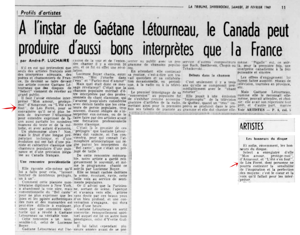 • À l'instar de Gaétane Létourneau, le Canada peut produire d'aussi bons interprètes que la France