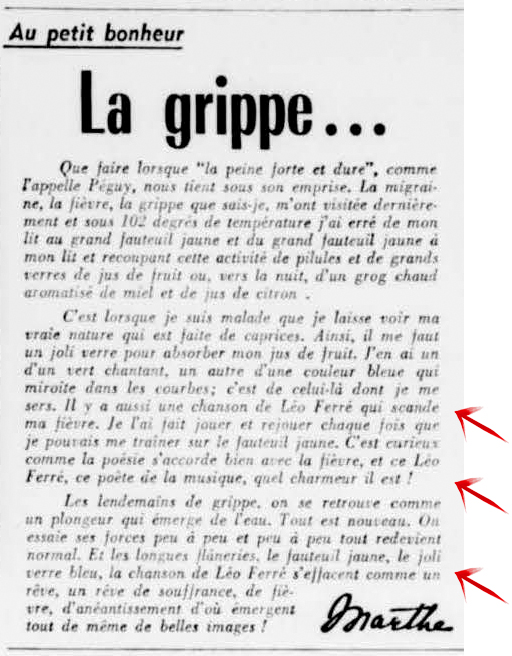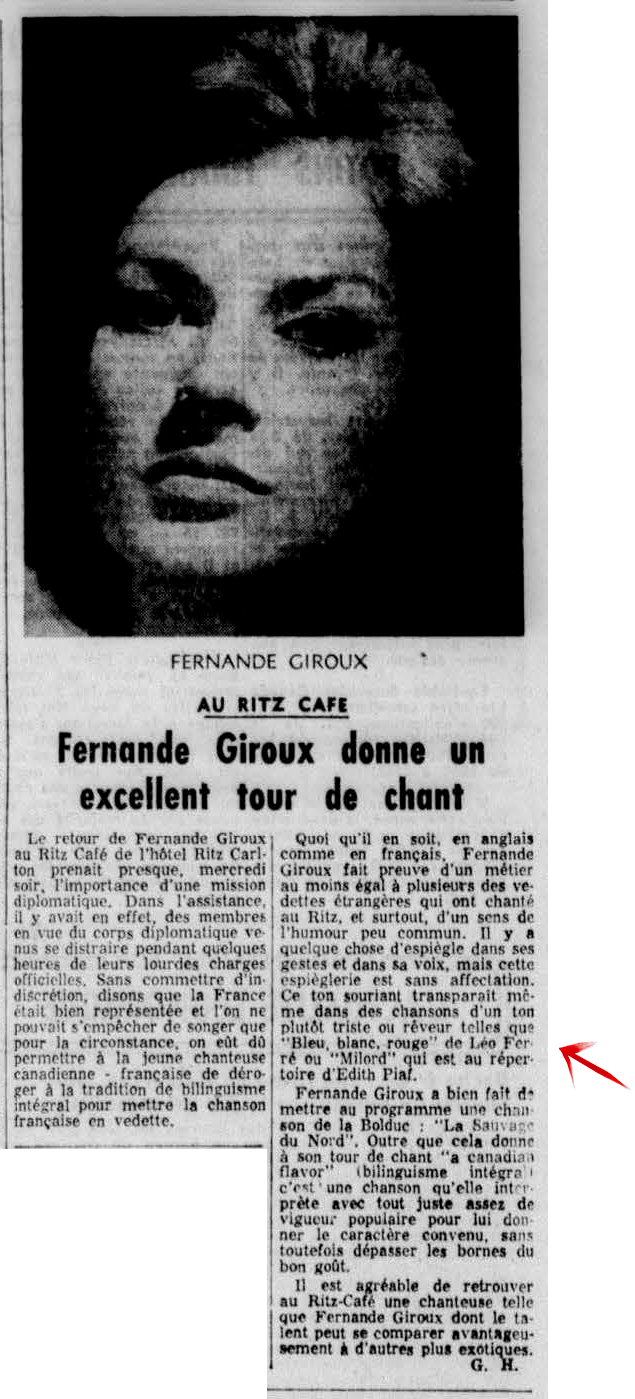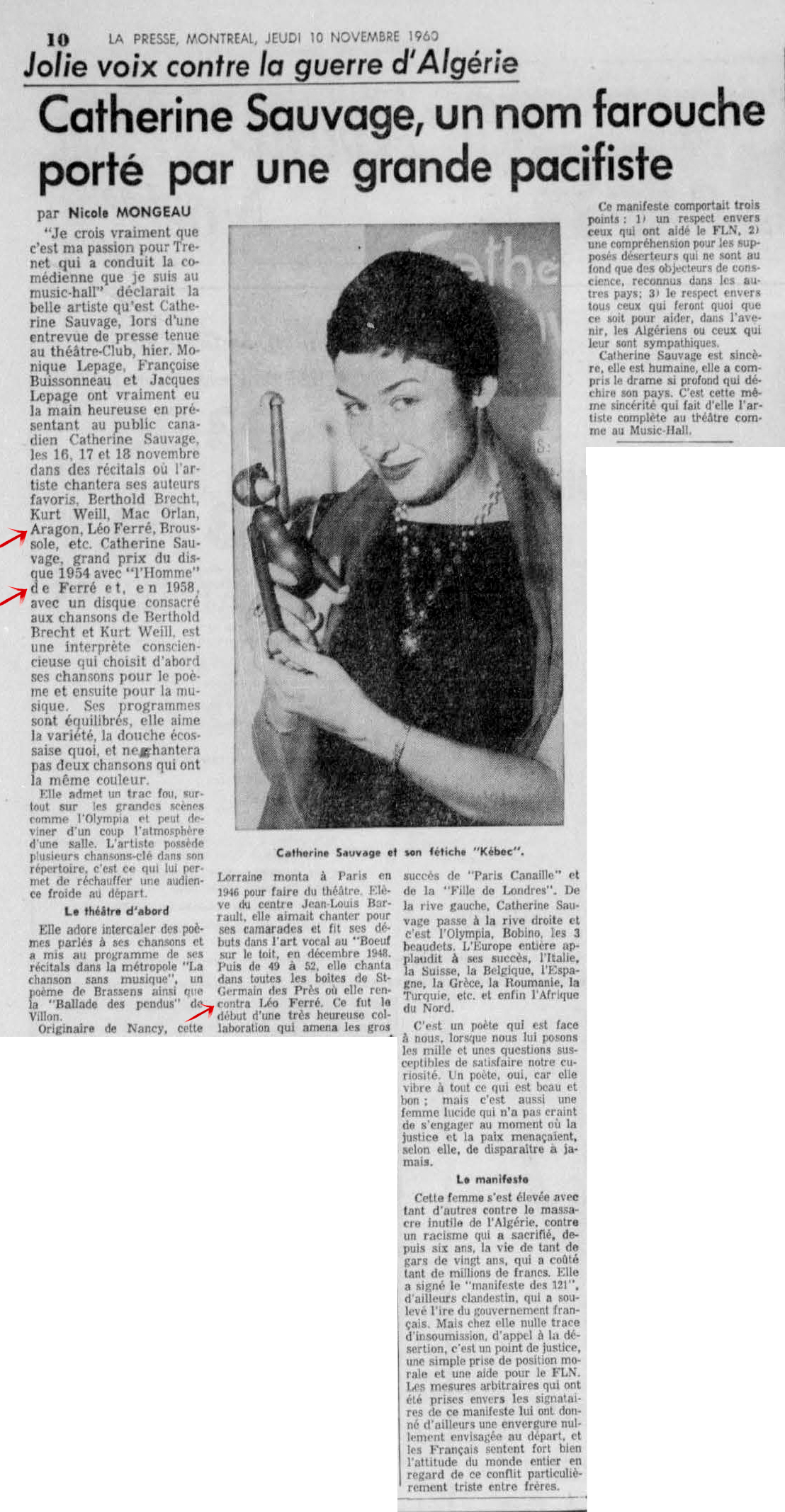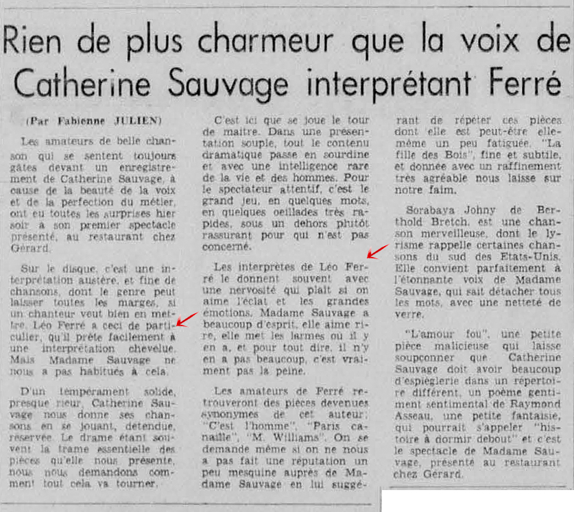 • Rien de plus charmeur que la voix de Catherine Sauvage interprétant Léo Ferré