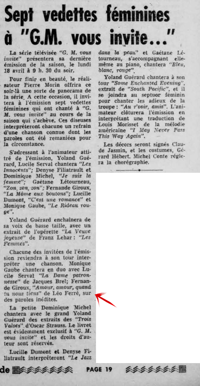 Radiomonde et télémonde, 1952-1960, samedi 30 avril 1960