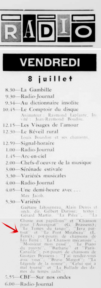 La semaine à Radio-Canada, 1950-1966, samedi 2 juillet 1960