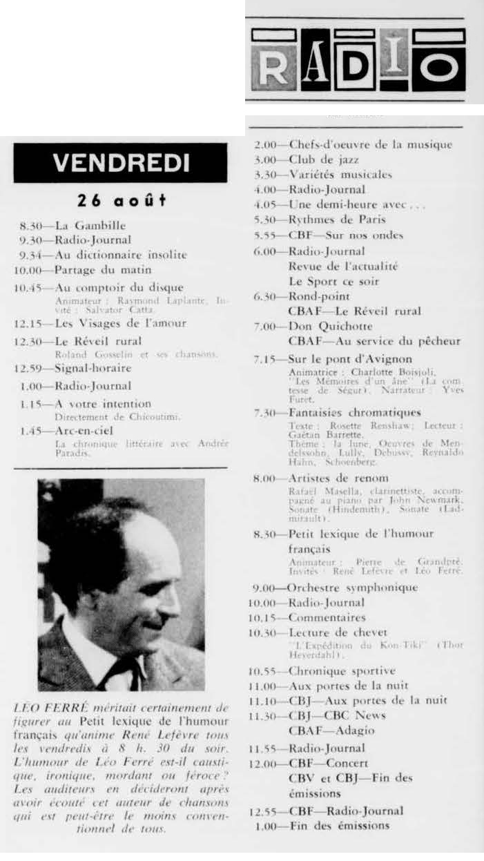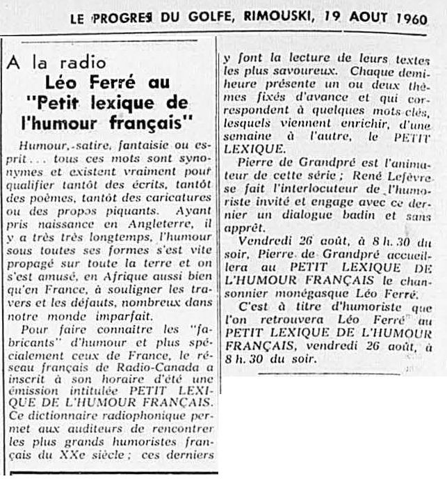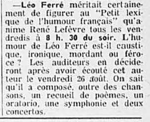 • Petit lexique de l'humour français (Invités René Lefèvre & Léo Ferré) - Radio
