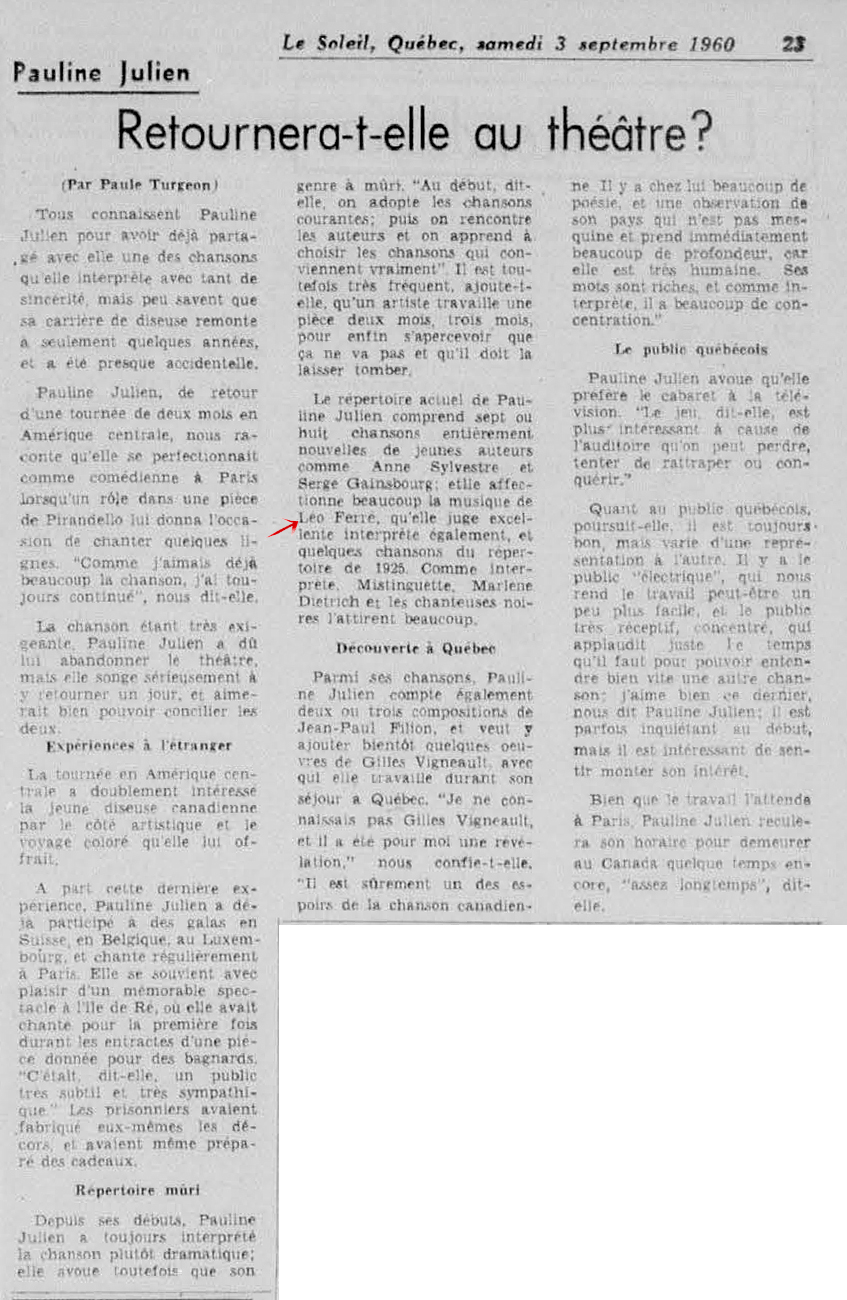• Pauline Julien - Retournera-t-elle au théâtre ?
