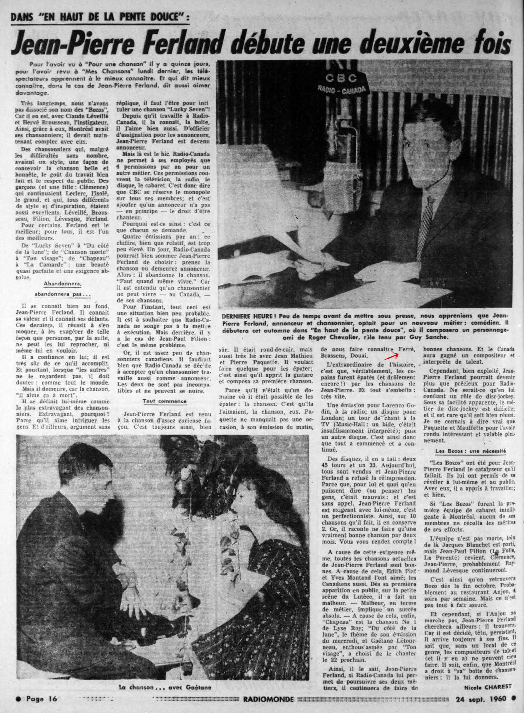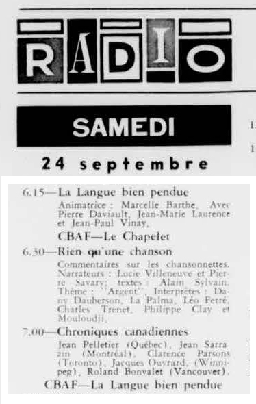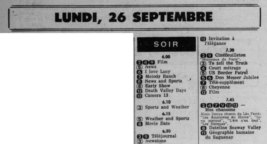 La semaine à Radio-Canada, 1950-1966, samedi 24 septembre 1960