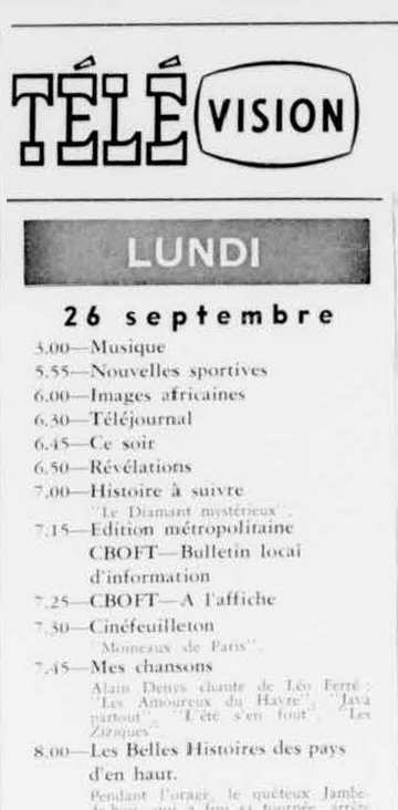 La semaine à Radio-Canada, 1950-1966, samedi 3 septembre 1960