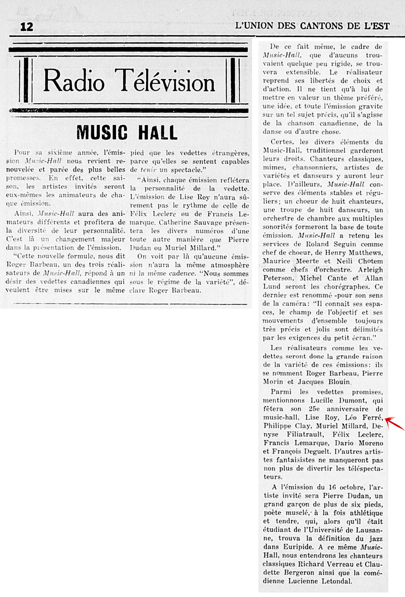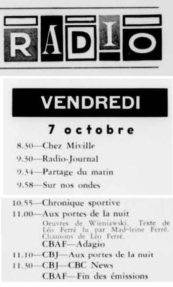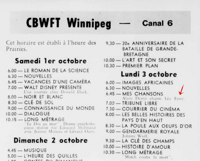 La semaine à Radio-Canada, 1950-1966, samedi 1 octobre 1960