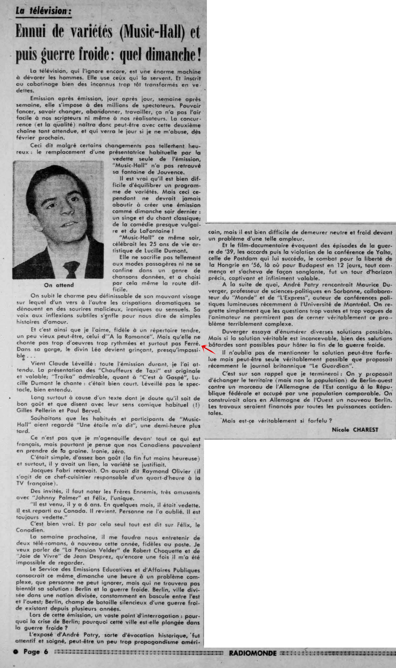 • Ennui de variétés (Music-Hall et puis guerre froide quel dimanche !