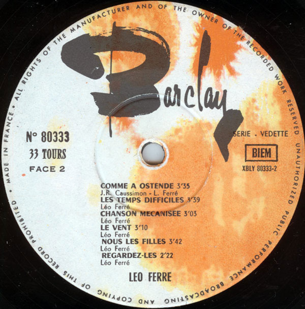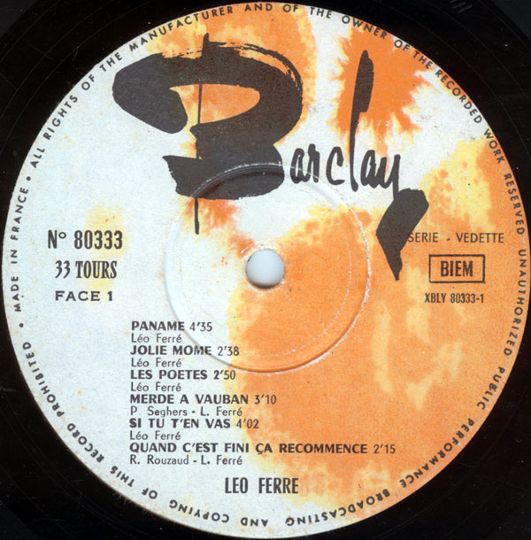 Il enregistre dans les studios Odéon, mais à titre privé, Soleil et Noël (Madame à minuit), les poèmes de Luc Bérimont qu’il a mis en musique l’année précédente ; restés à l’état de maquette 45 T, les deux titres sortiront en CD en 1993.