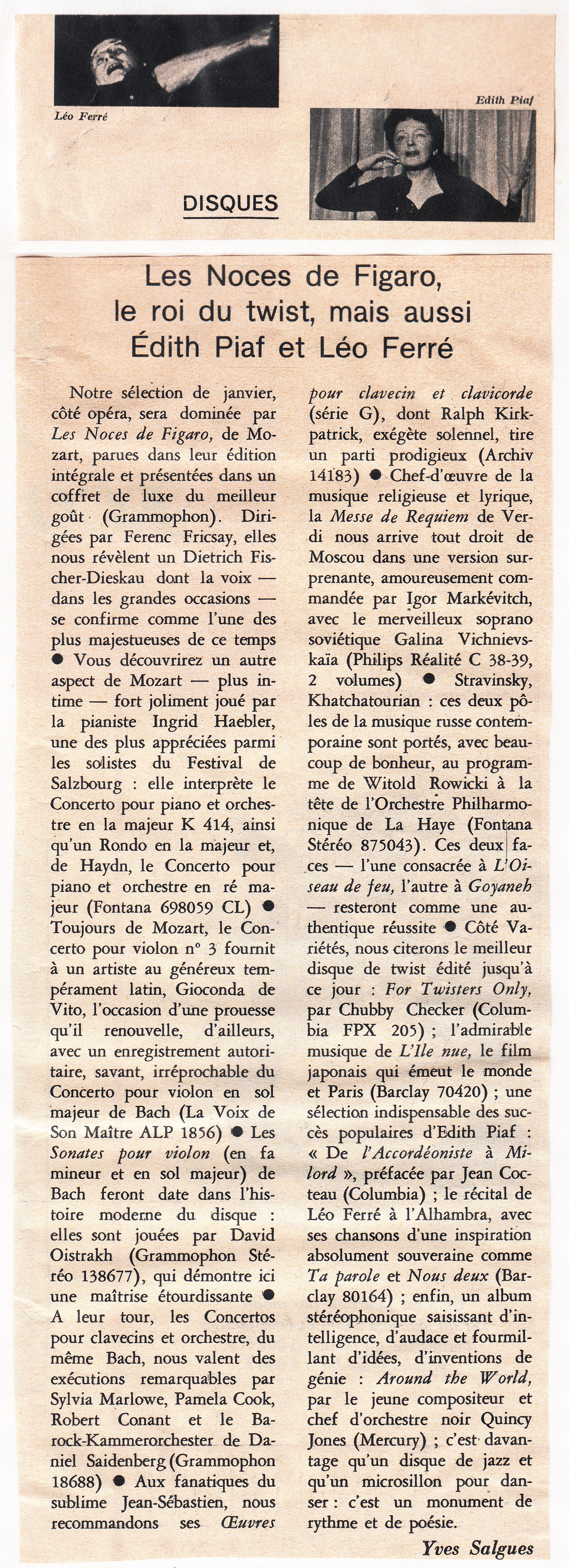• Les noces de Figaro, le roi du twist, mais aussi Édith Piaf et Léo Ferré