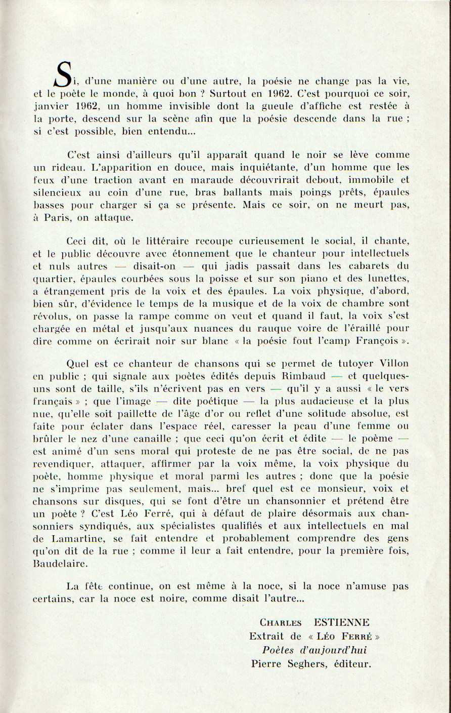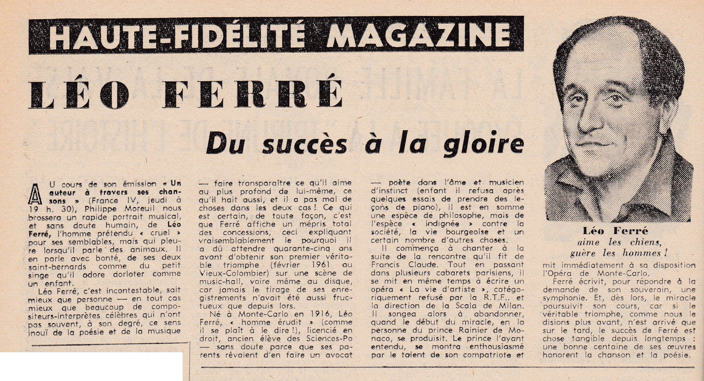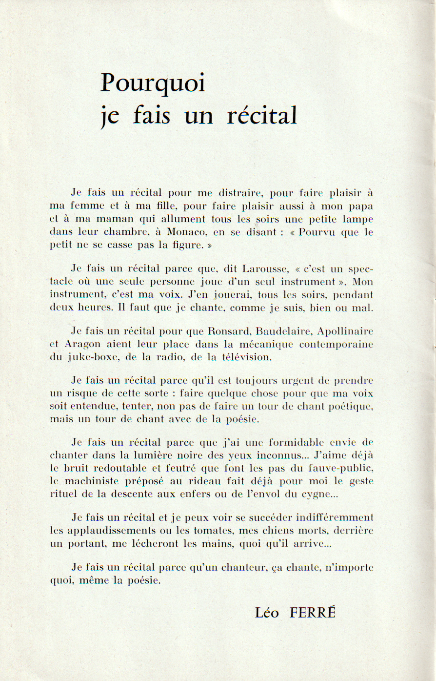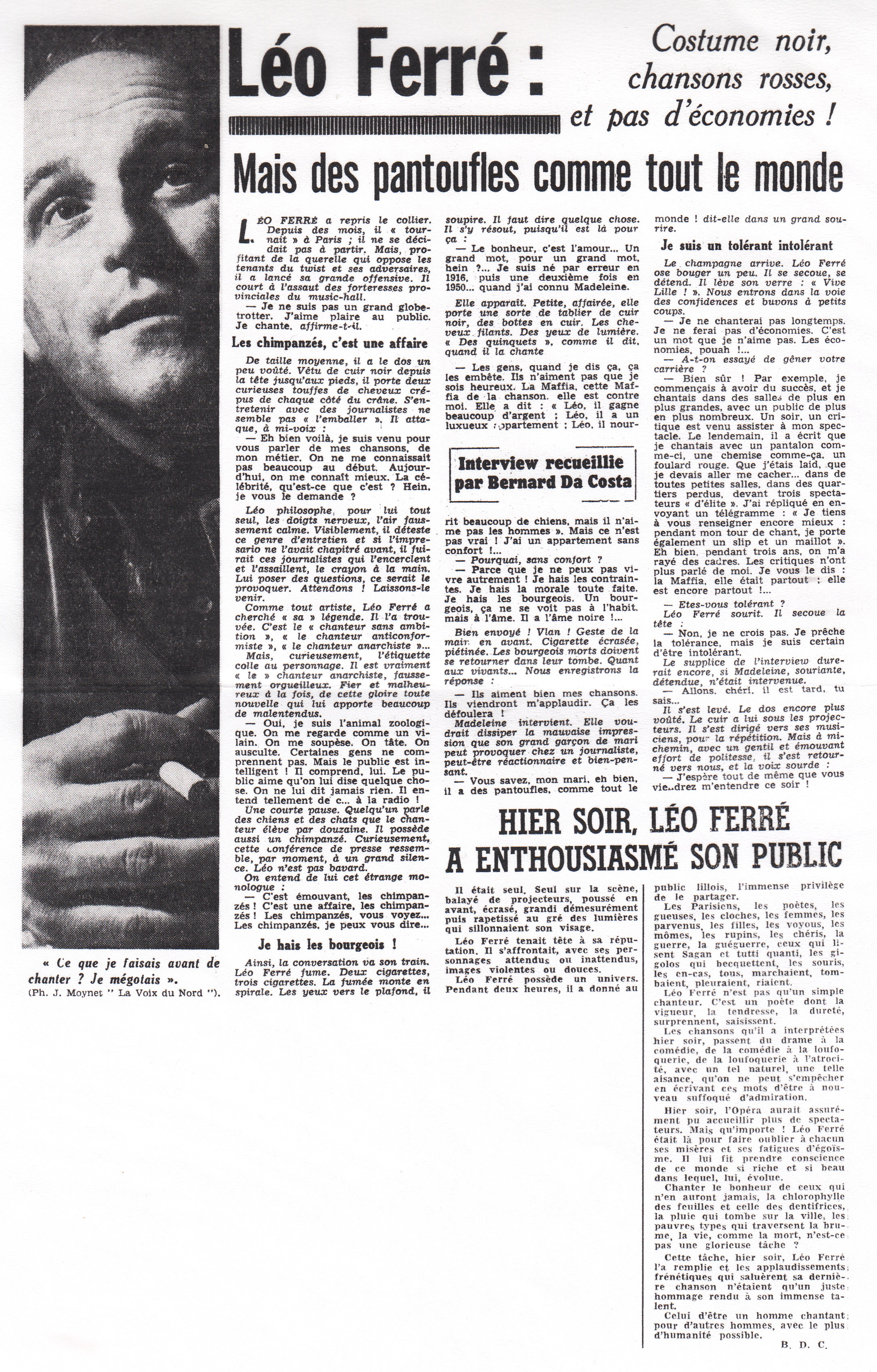 • Léo Ferré : Costume noir, chansons rosses et pas d'économies ! Mais des pantoufles comme tout le monde