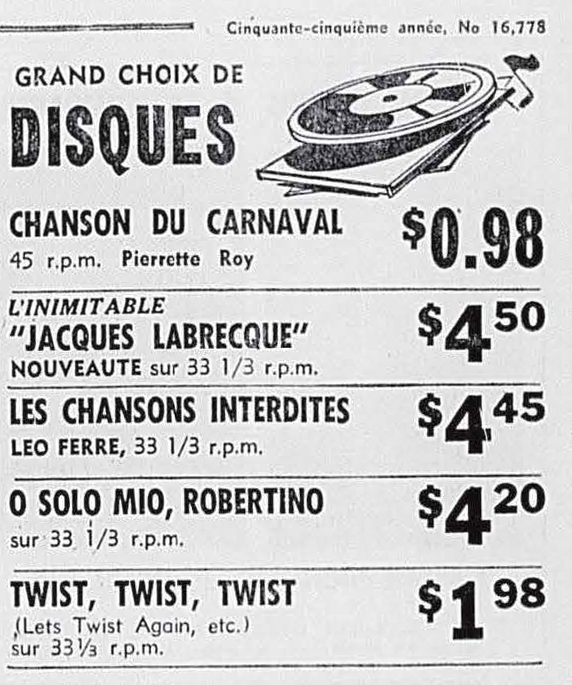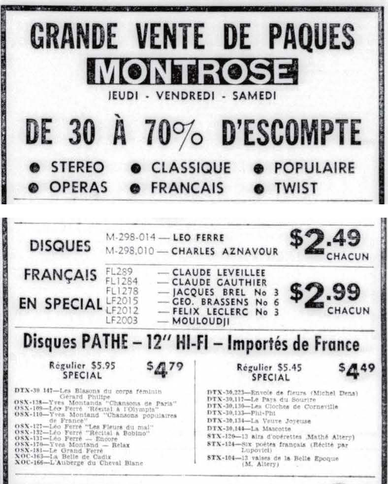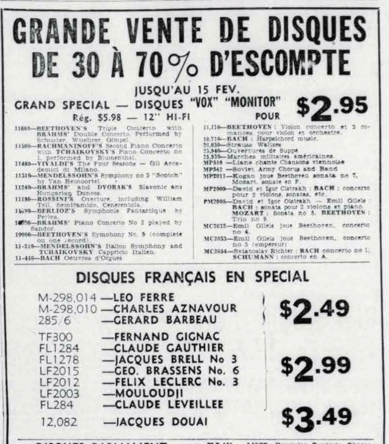 • Grand vente de disques de 30 à 70% d'escompte - Publicité