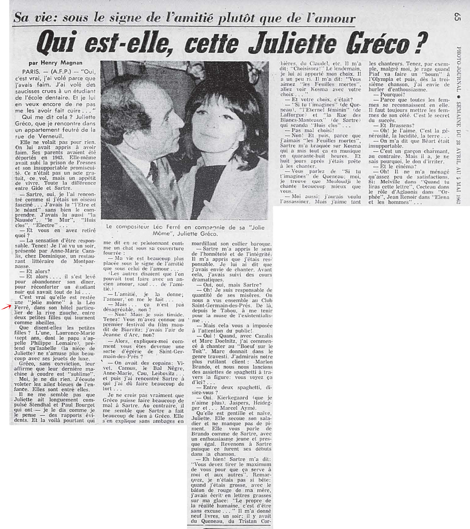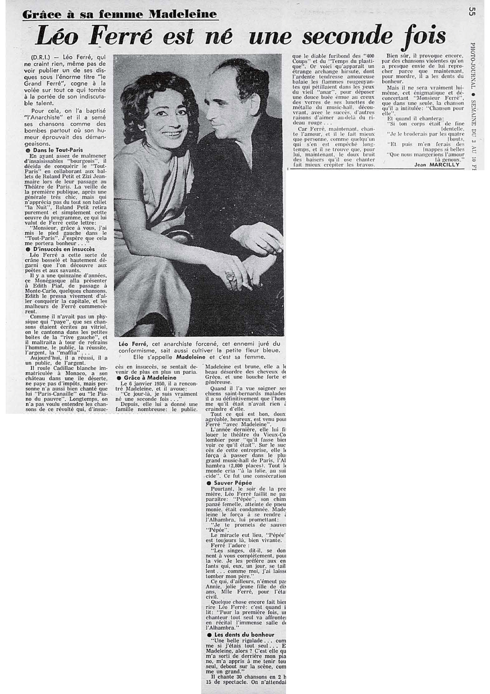 • Grâce à sa femme Madeleine Léo Ferré est né une seconde fois