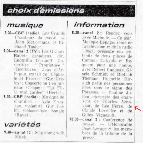05.02 : Léo Ferré chante Nous deux et Les temps difficiles.