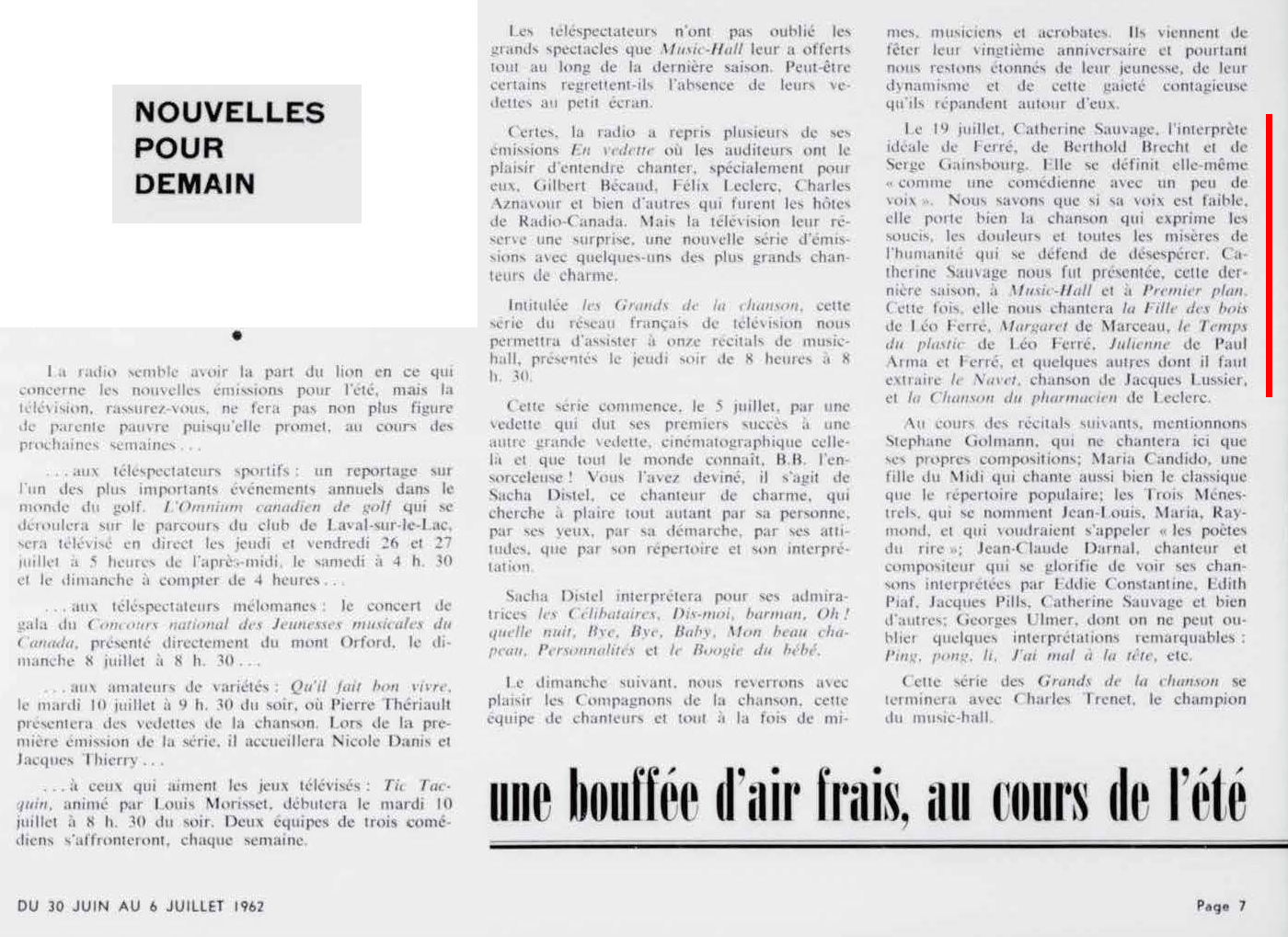 30.06 : La semaine à Radio-Canada, 1950-1966, samedi 30 juin 1962
