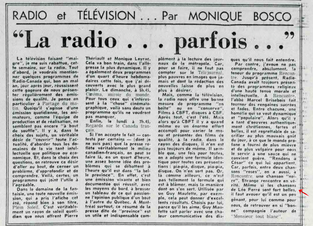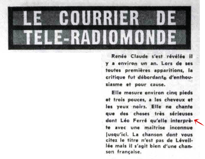 • Le courrier de Télé-Radiomonde (Renée Claude)