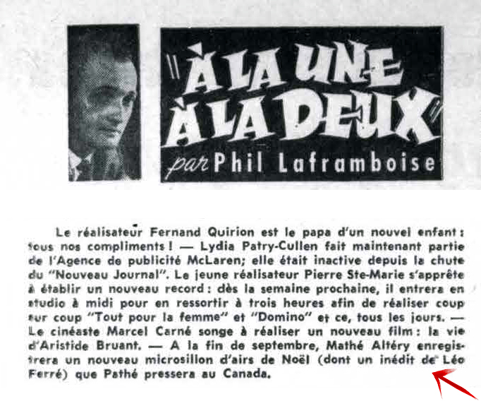• À la une, à la deux (Mathé Altéry, inédit de Léo Ferré)