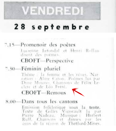 22.09 : La semaine à Radio-Canada, 1950-1966, samedi 22 septembre 1962
