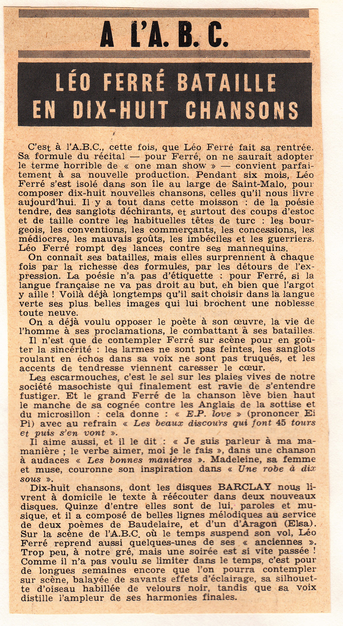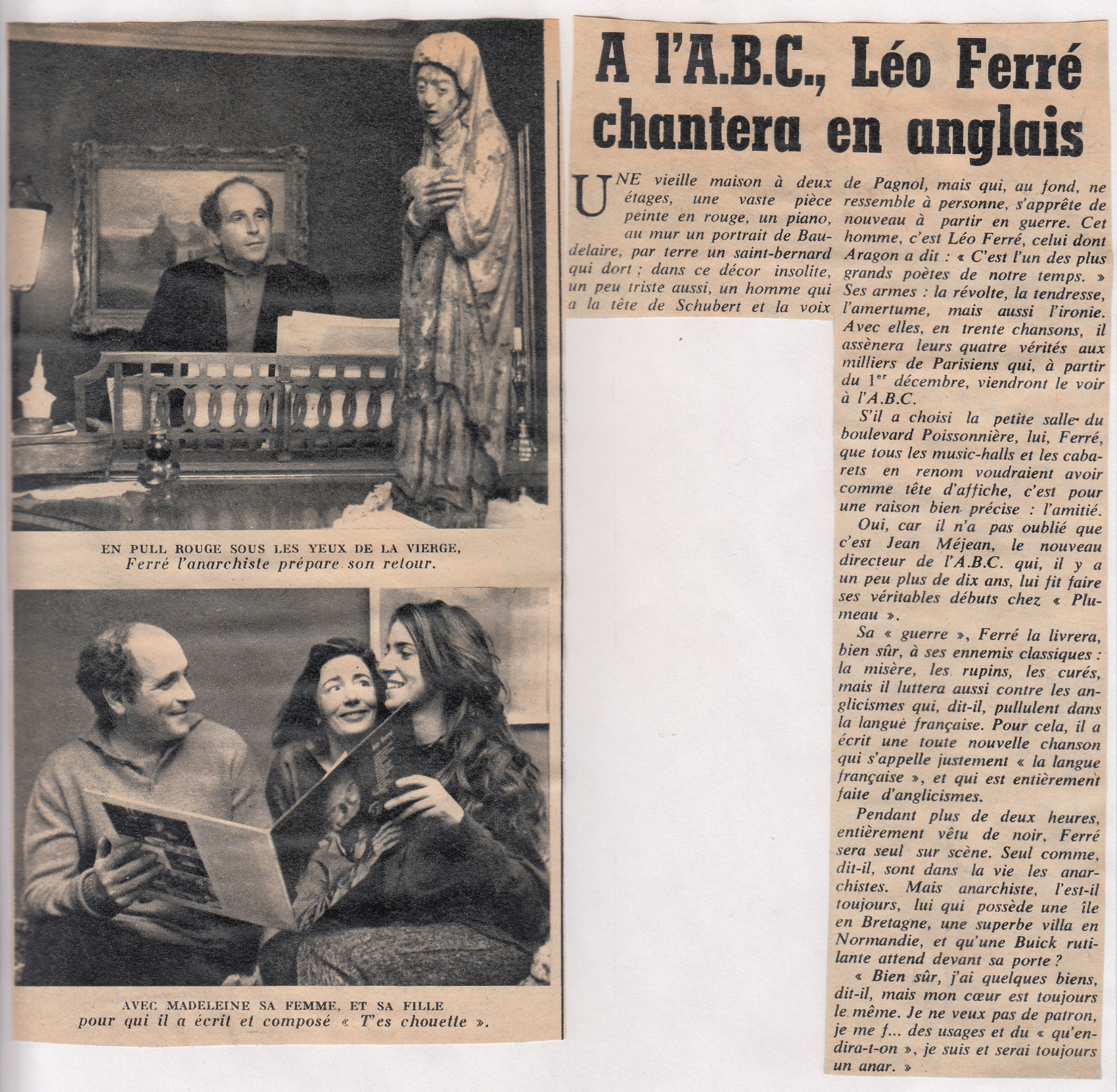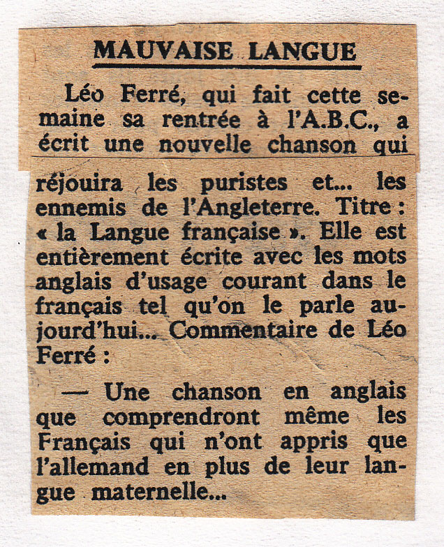 • À l'A.B.C., Léo Ferré chantera en anglais