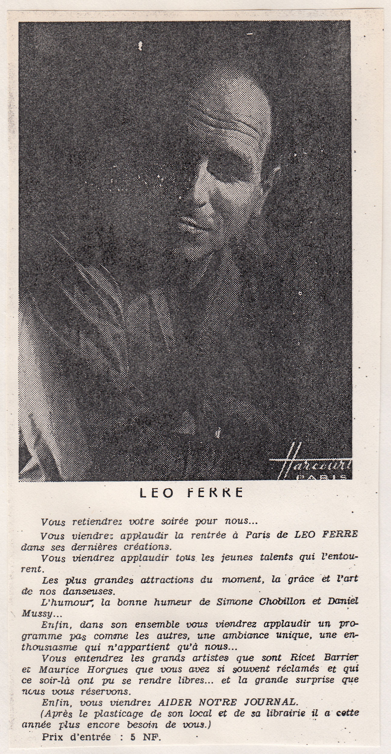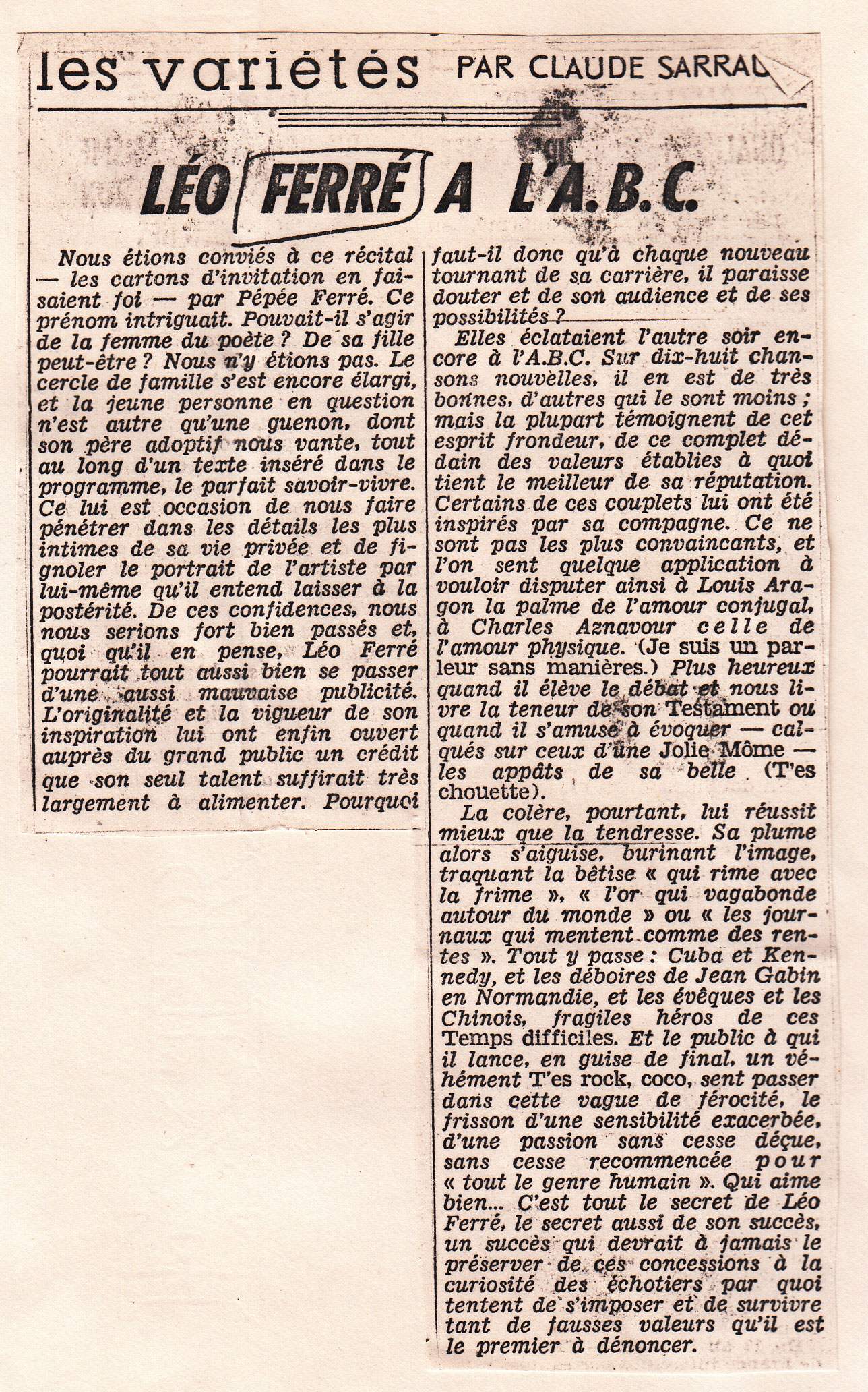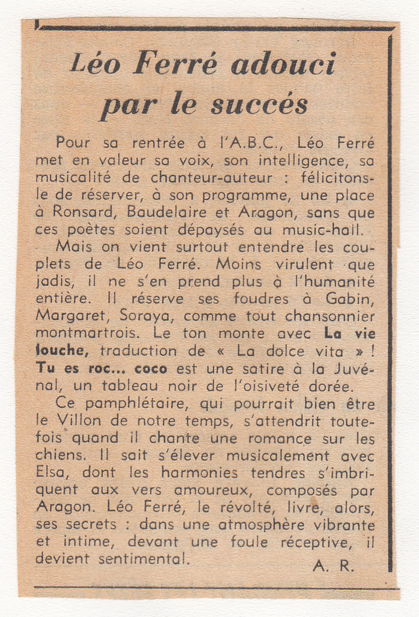 • À l'A.B.C., Léo Ferré chantera en anglais