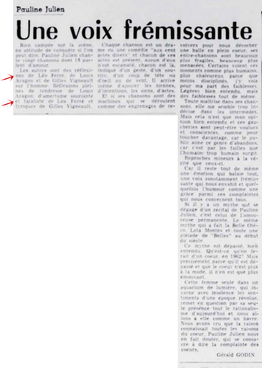 10.11 : Juliette Gréco chante Jolie môme", chanson de Léo Ferré.
