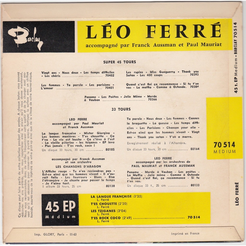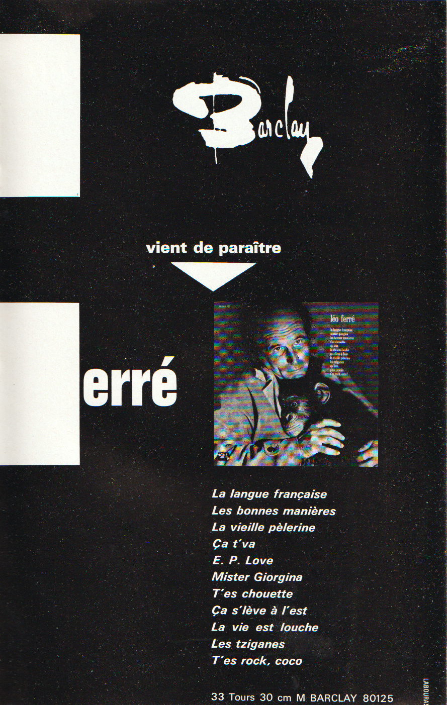 Enregistrement (du 9 octobre au 10 novembre) et sortie chez Barclay (80 185) de l’album La langue française.