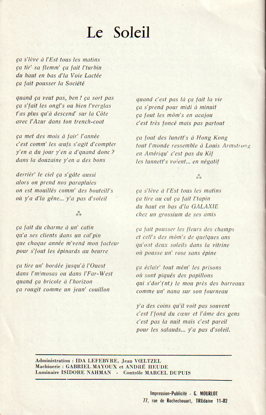 Mais une autre collection en 1962 intitulée celle-ci Poésie et chansons lui donne le numéro 1.