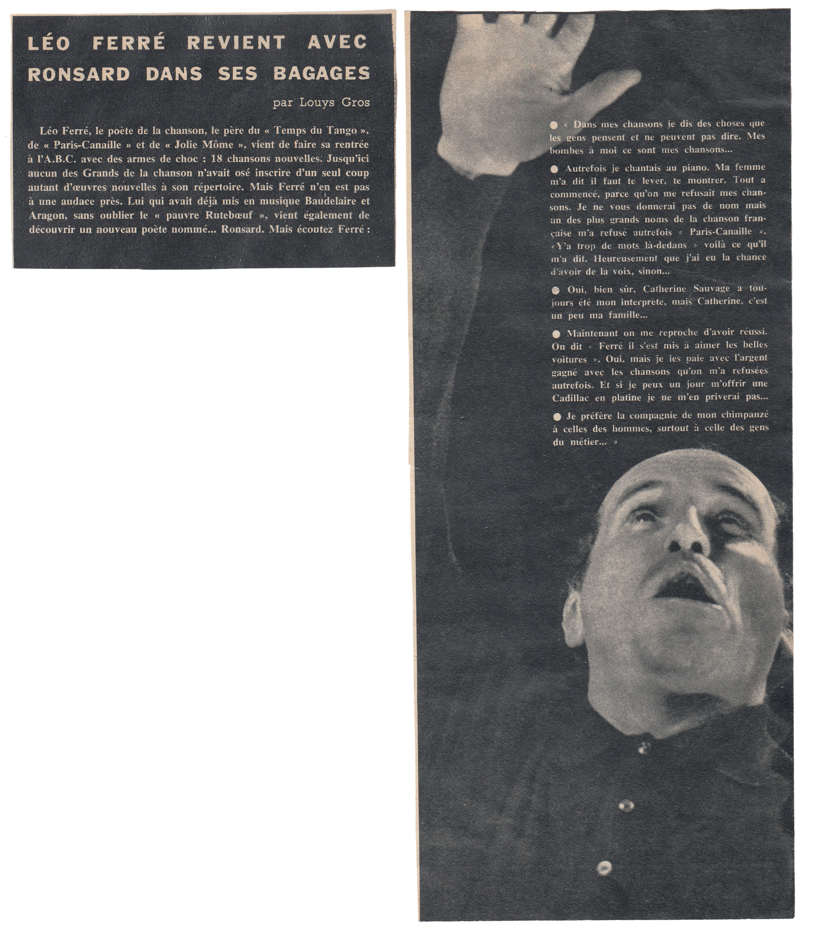 • Léo Ferré revient avec Ronsard dans ses bagages