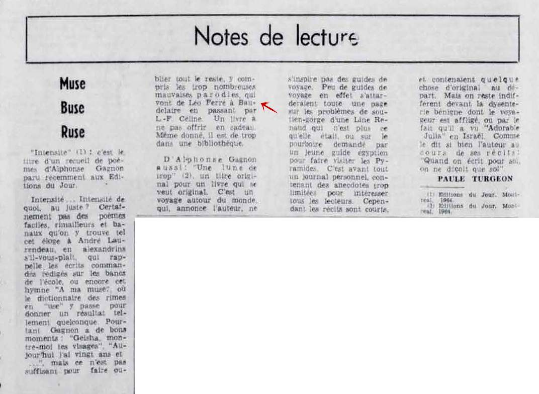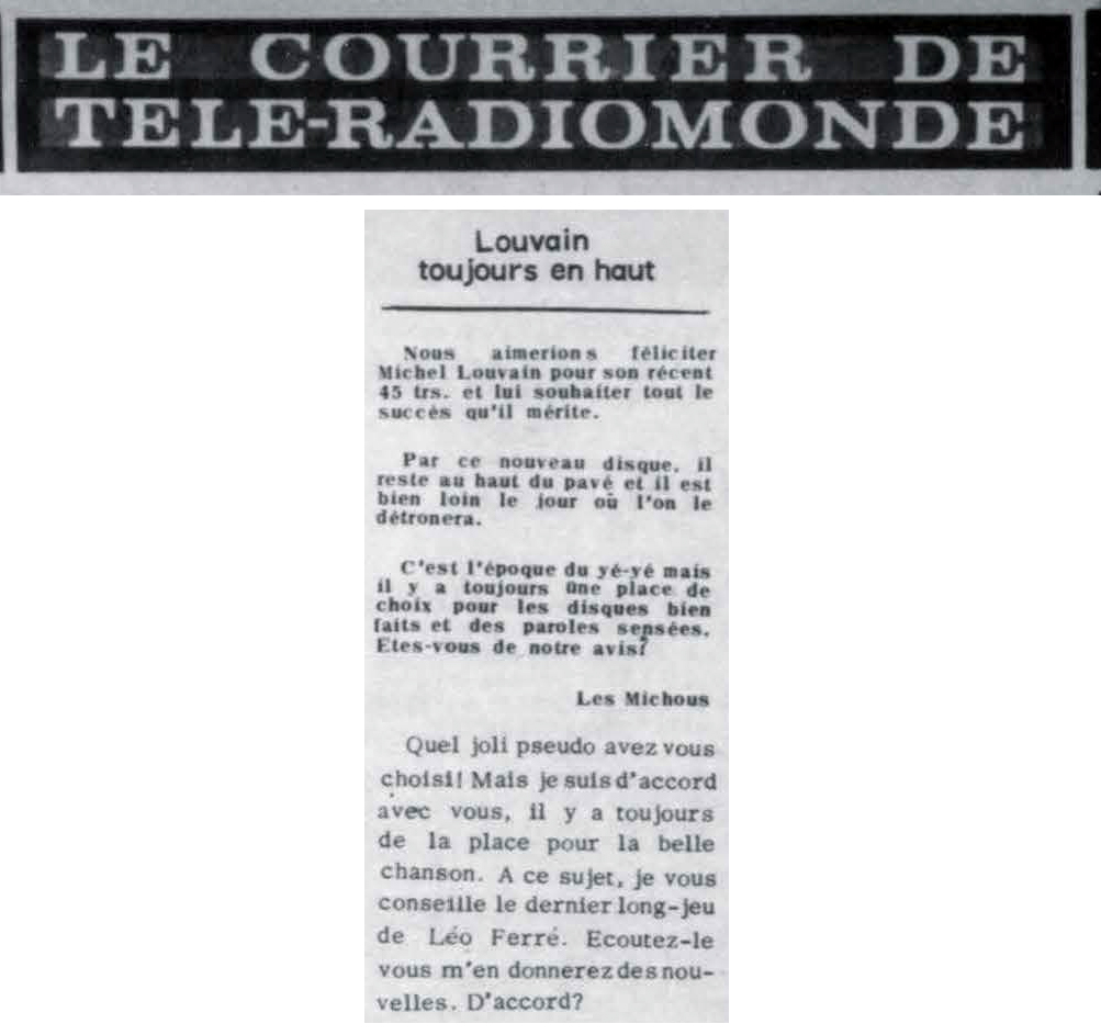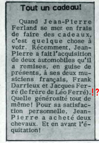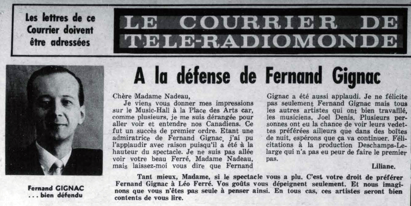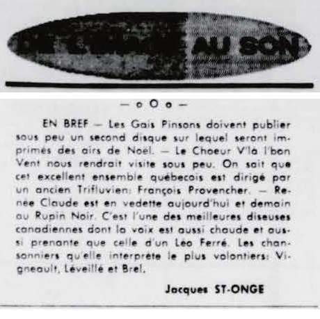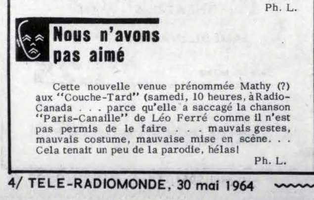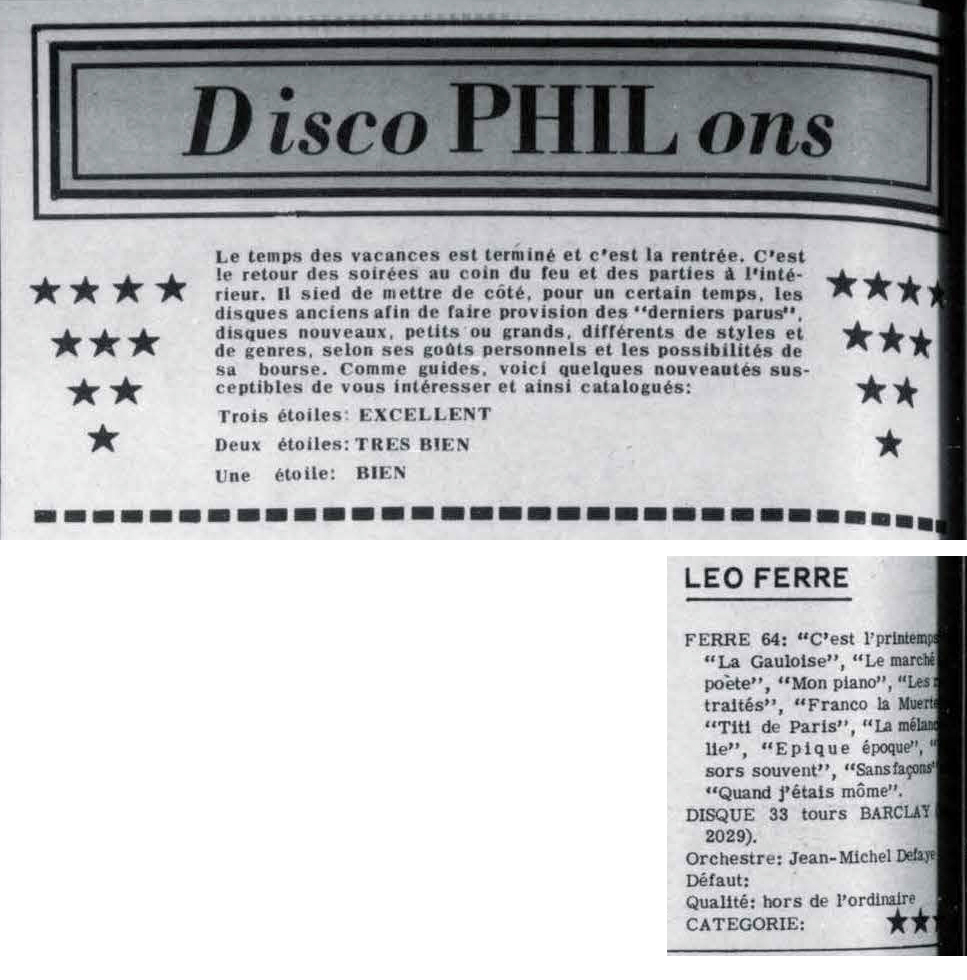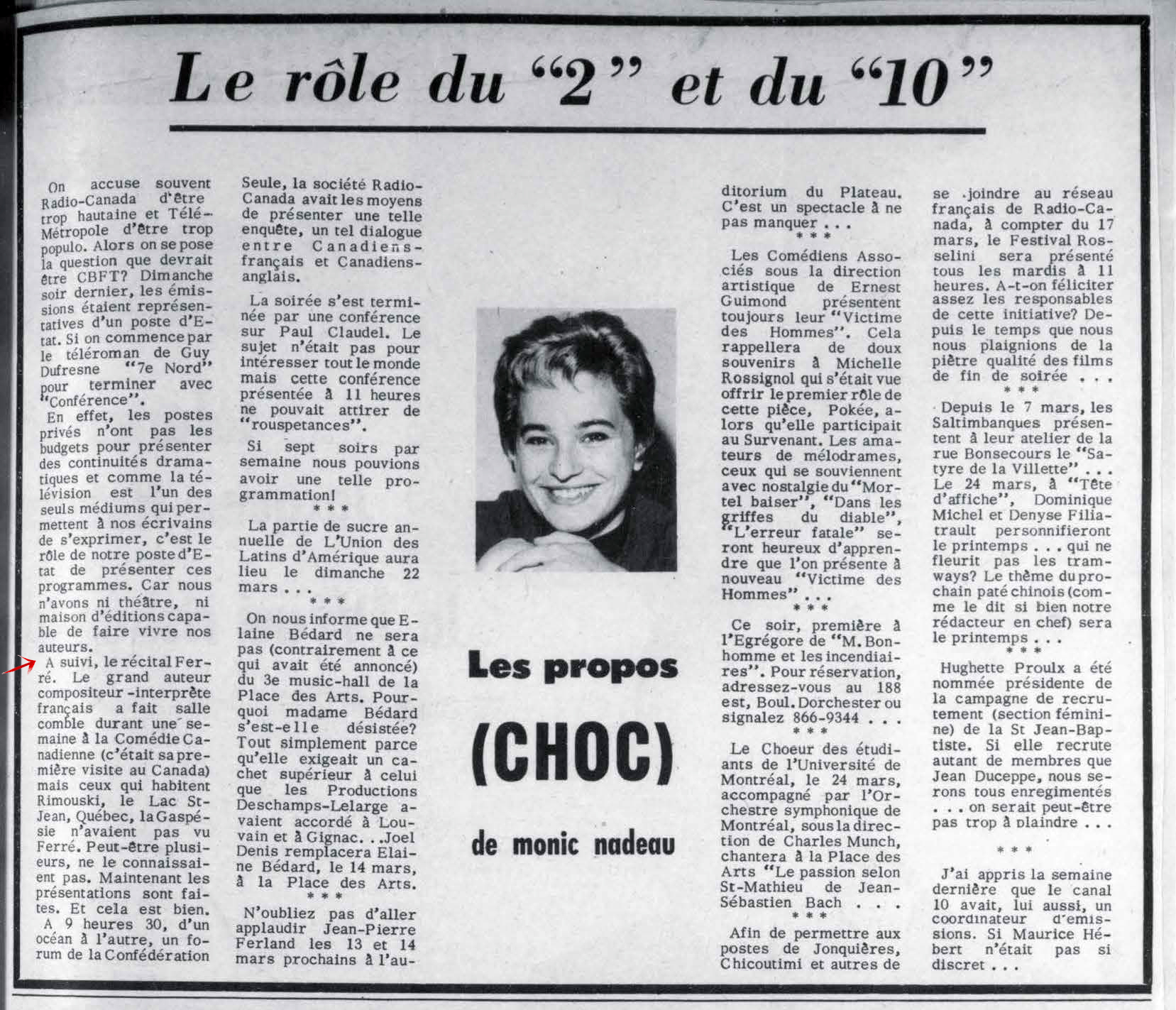 18.07 : Catherine Sauvage chante C'est l'homme et divers courts extraits de chansons de Léo Ferré dans l'émission Du yoyo au yéyé.