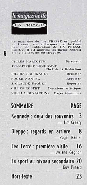 11.01 : La presse, 1884- (Montréal), 11 janvier 1964, Le magazine de la Presse