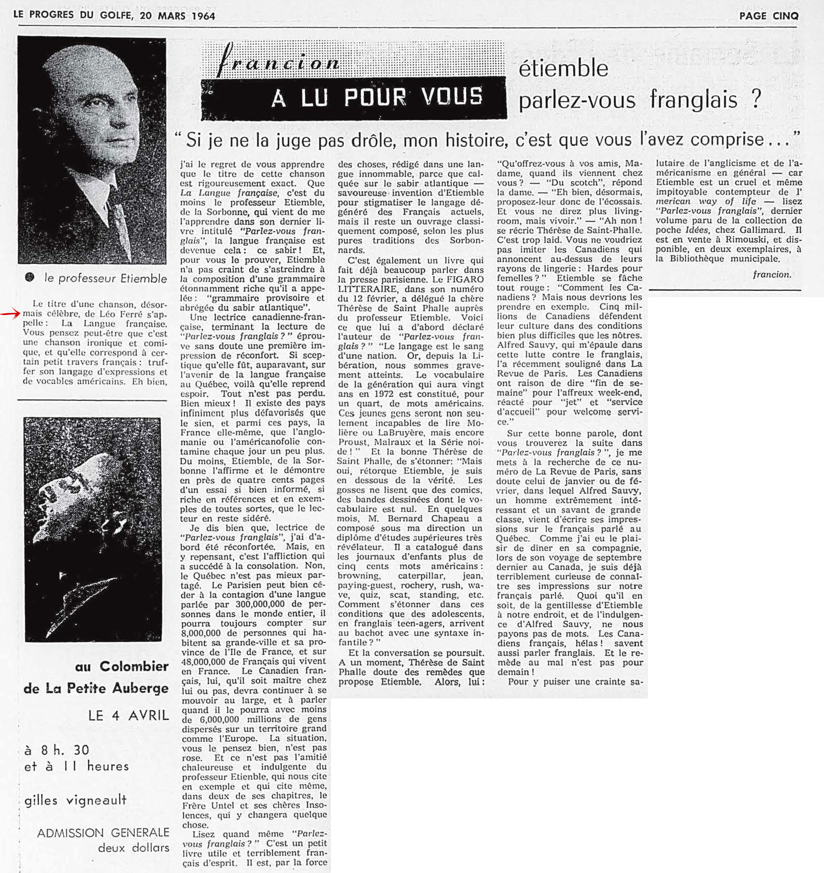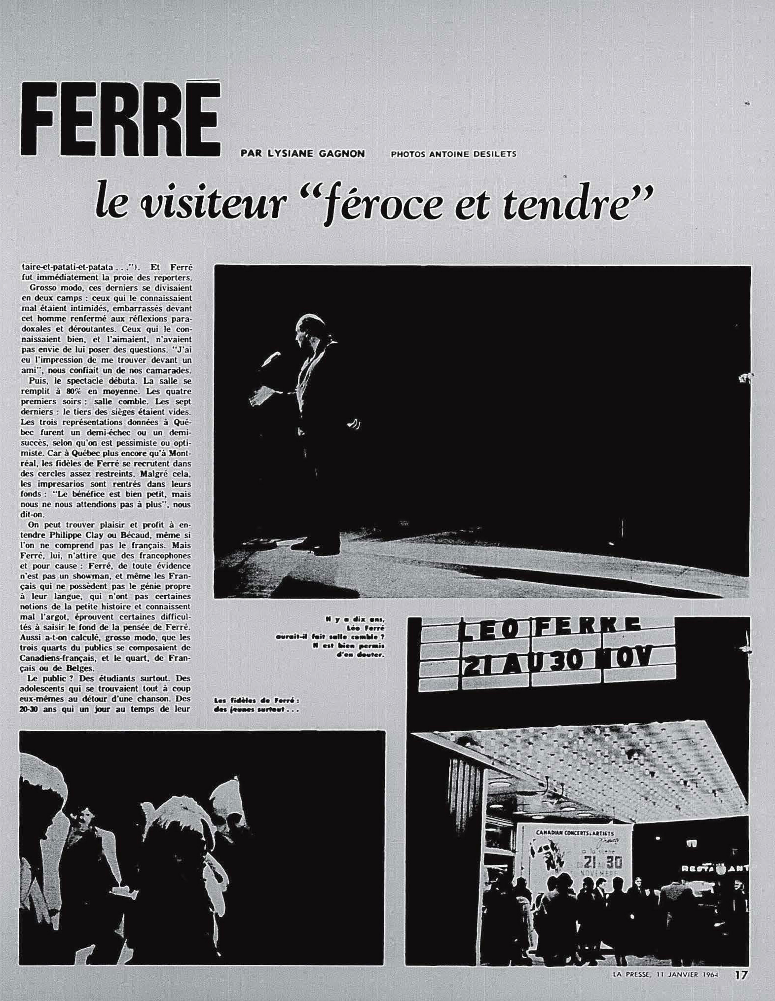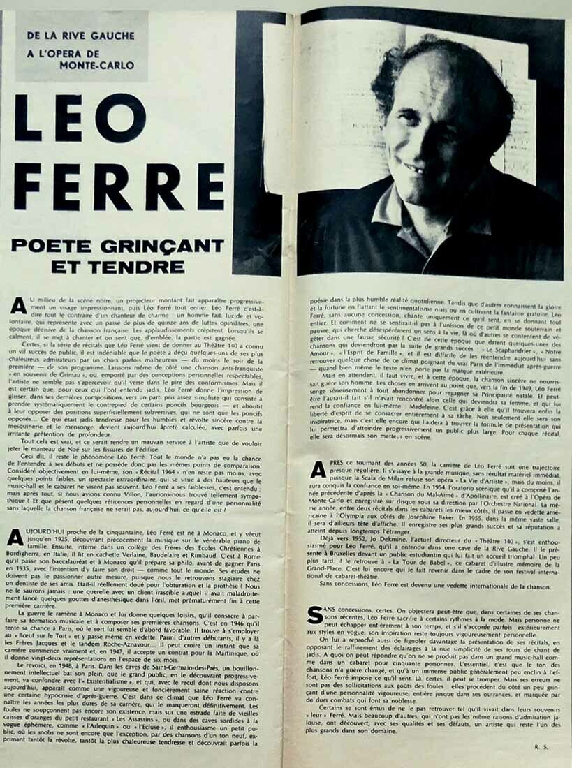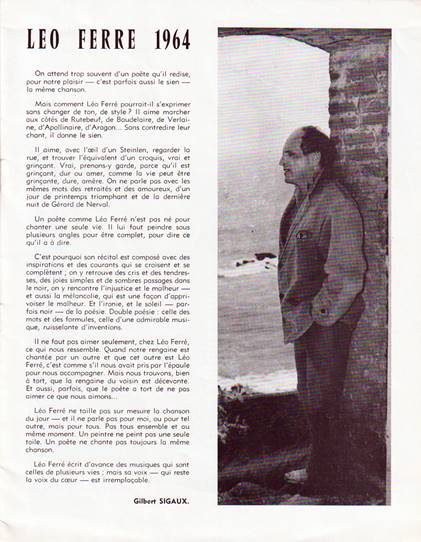 En 1964, fraîchement débarqué sur le label Barclay, Léo Ferré débarque le jour de la fête nationale française le 14 juillet à Liège, pour un show resté dans les annales de la Cité Ardente.