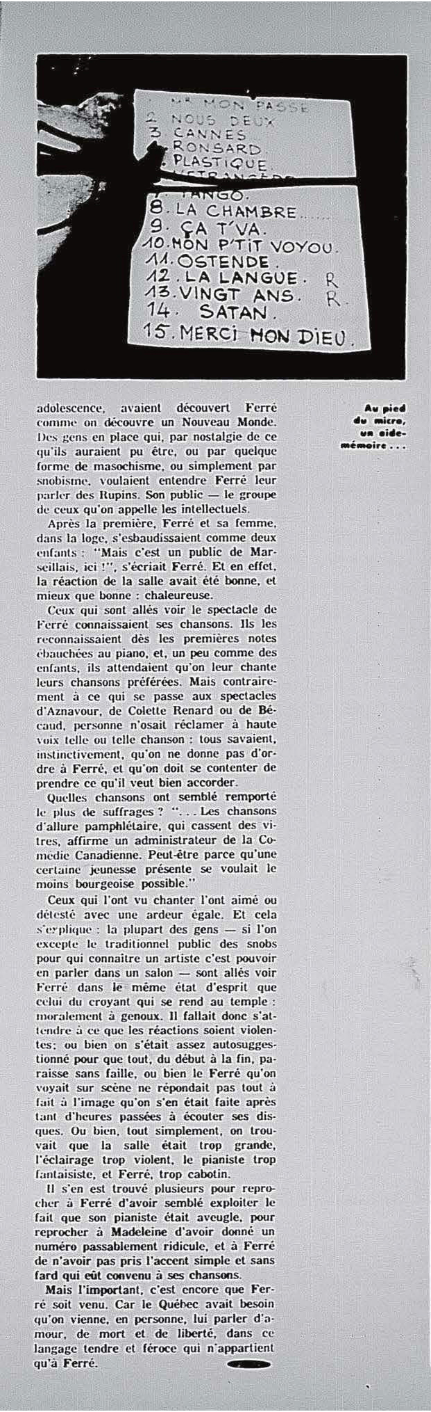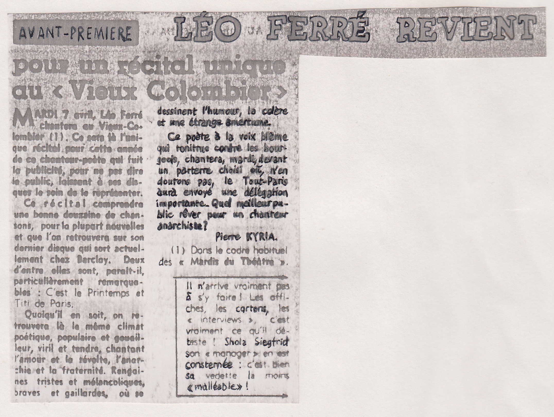 06.03 : Léo Ferré chante au Théâtre de la Cité à Lyon ? pour plusieurs jours.