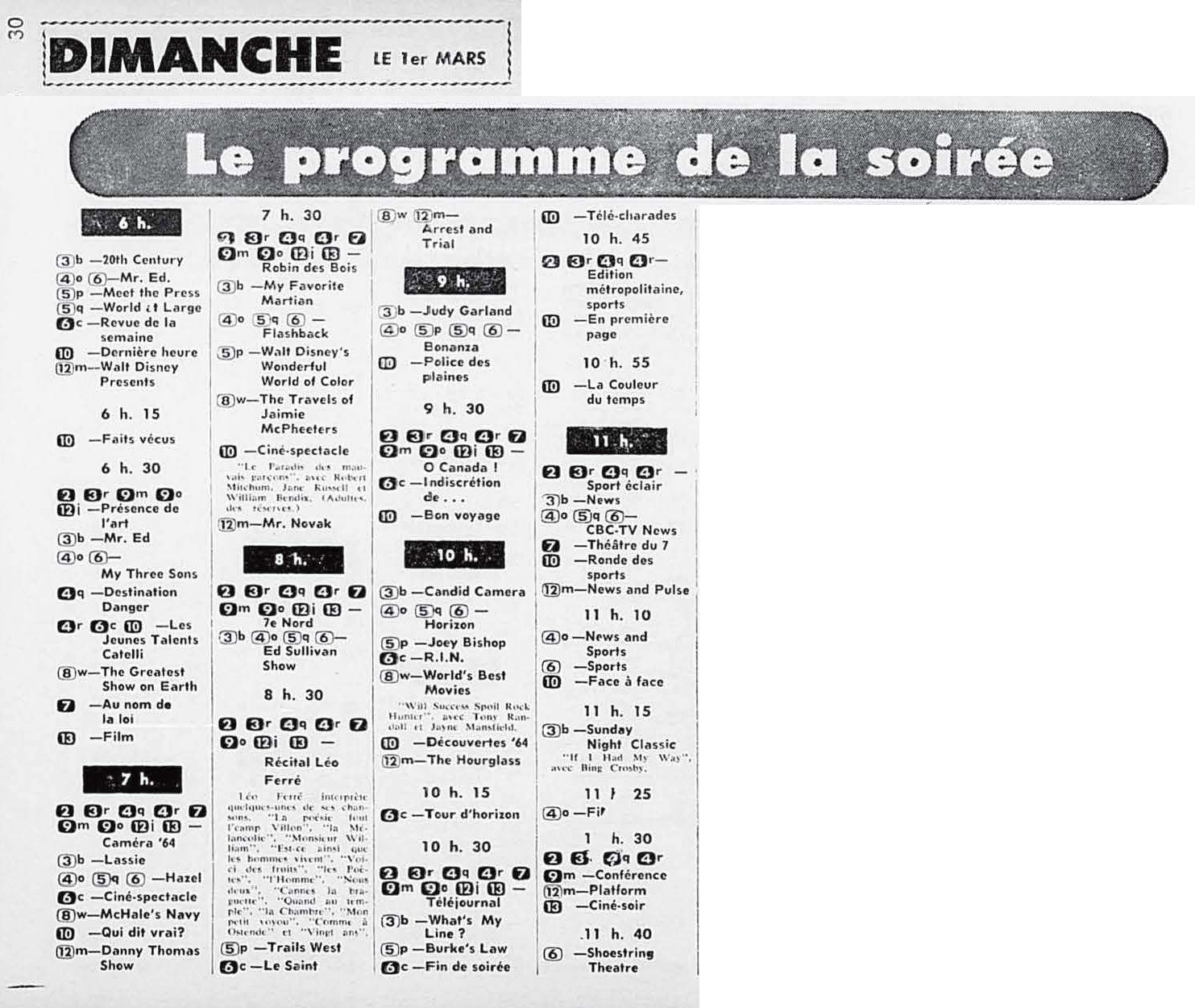 29.02 : La semaine à Radio-Canada, 1950-1966, samedi 29 février 1964